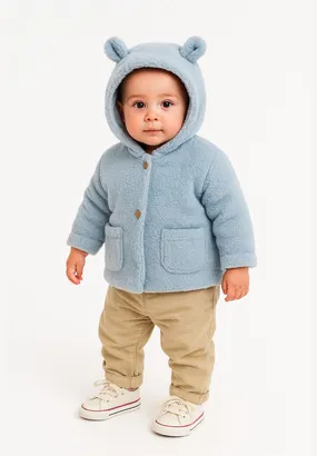 Wykonana z pluszowego materiału Sherpa kurtka niemowlęca zapewnia ciepło i wygodę. Urocze uszy 3D na kapturze dodają uroczego wyglądu, sprawiając, że dziecko wyróżnia się nieodpartą słodyczą. Zapięcie na drewniane guziki ułatwia ubieranie. Kurtka ta zapewnia zarówno praktyczność, jak i styl małemu poszukiwaczowi przygód podczas wycieczek na świeżym powietrzu.