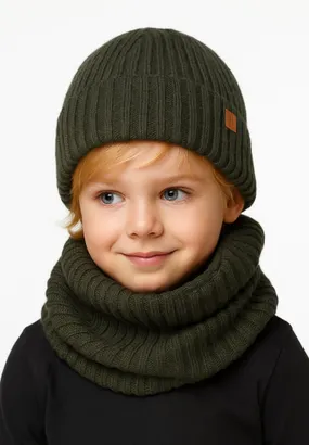 Zestaw zimowy dla dzieci z miękkiej dzianiny prążkowanej to praktyczne rozwiązanie na zimne dni. Czapka z wywinięciem i dopasowany komin zapewniają ciepło i wygodę bez ryzyka przegrzania. Komplet łatwo się zakłada i nie przeszkadza w zabawie. Idealny wybór dla każdej mamy – stylowy i funkcjonalny.