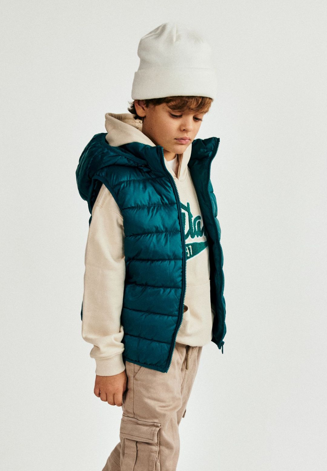 Bezrękawnik chłopięcy ocieplany z odpinanym kapturem zielony 2-14 lat
