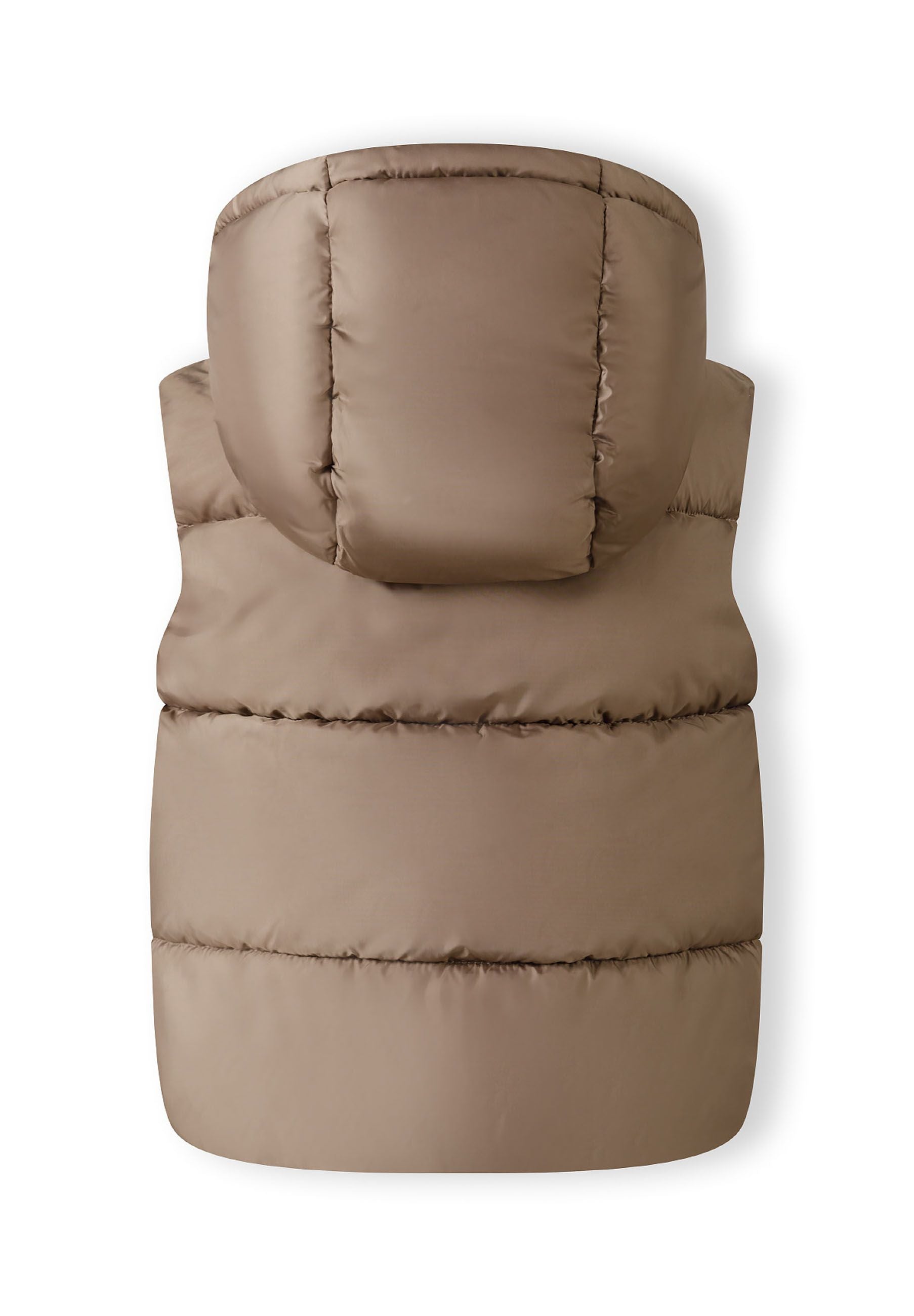Bezrękawnik ocieplany chłopięcy z kapturem beżowy z podszewką z misia 9 m-8 lat