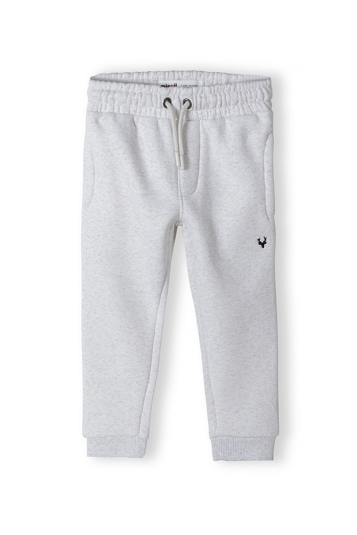 Spodnie dresowe zaprojektowane dla chłopców, przeznaczone do codziennego noszenia, zapewniające komfort i ciepło w chłodniejsze dni. Te spodnie dresowe wykonane są z miękkiego, szarego polaru, idealnego do codziennego użytku przez chłopców. Posiadają elastyczny pas z troczkami, które pozwalają na regulowane i pewne dopasowanie. Nogawki zakończone są miękkimi, prążkowanymi ściągaczami, które utrzymują odpowiednie przyleganie i wspierają swobodę ruchów podczas aktywności. Na boku jednej nogawki znajduje się subtelny haft, dodający delikatny element dekoracyjny. Spodnie dresowe zapewniają wygodne dopasowanie i dobrze komponują się z bluzami na zamek oraz sportowym obuwiem. Nie podano dodatkowego składu materiału ani szczegółowych instrukcji pielęgnacji.