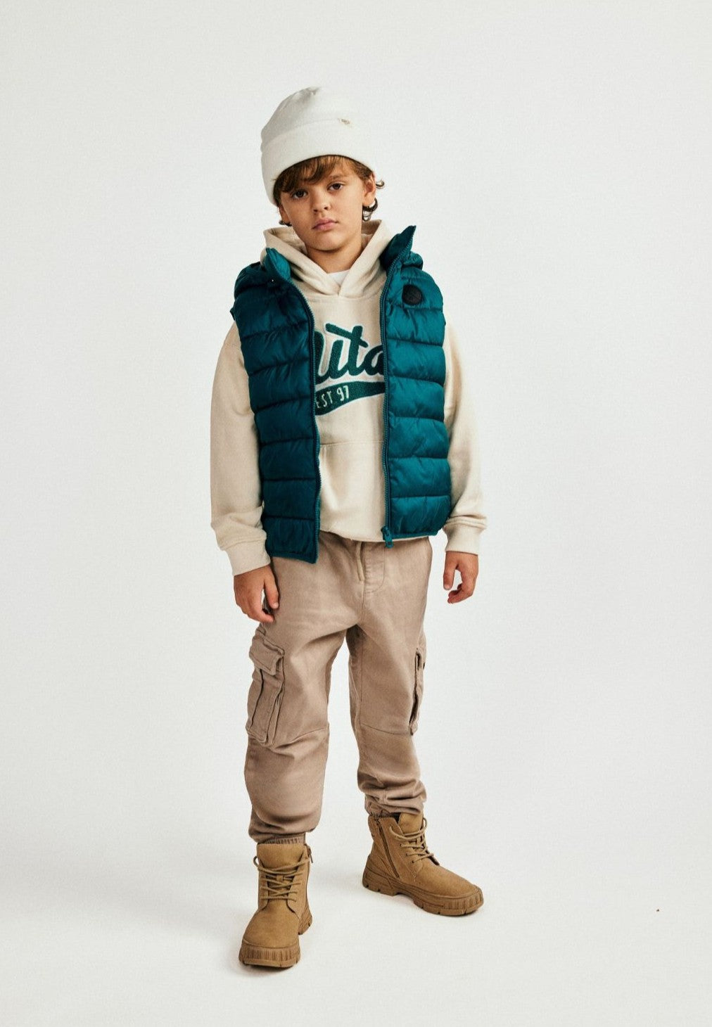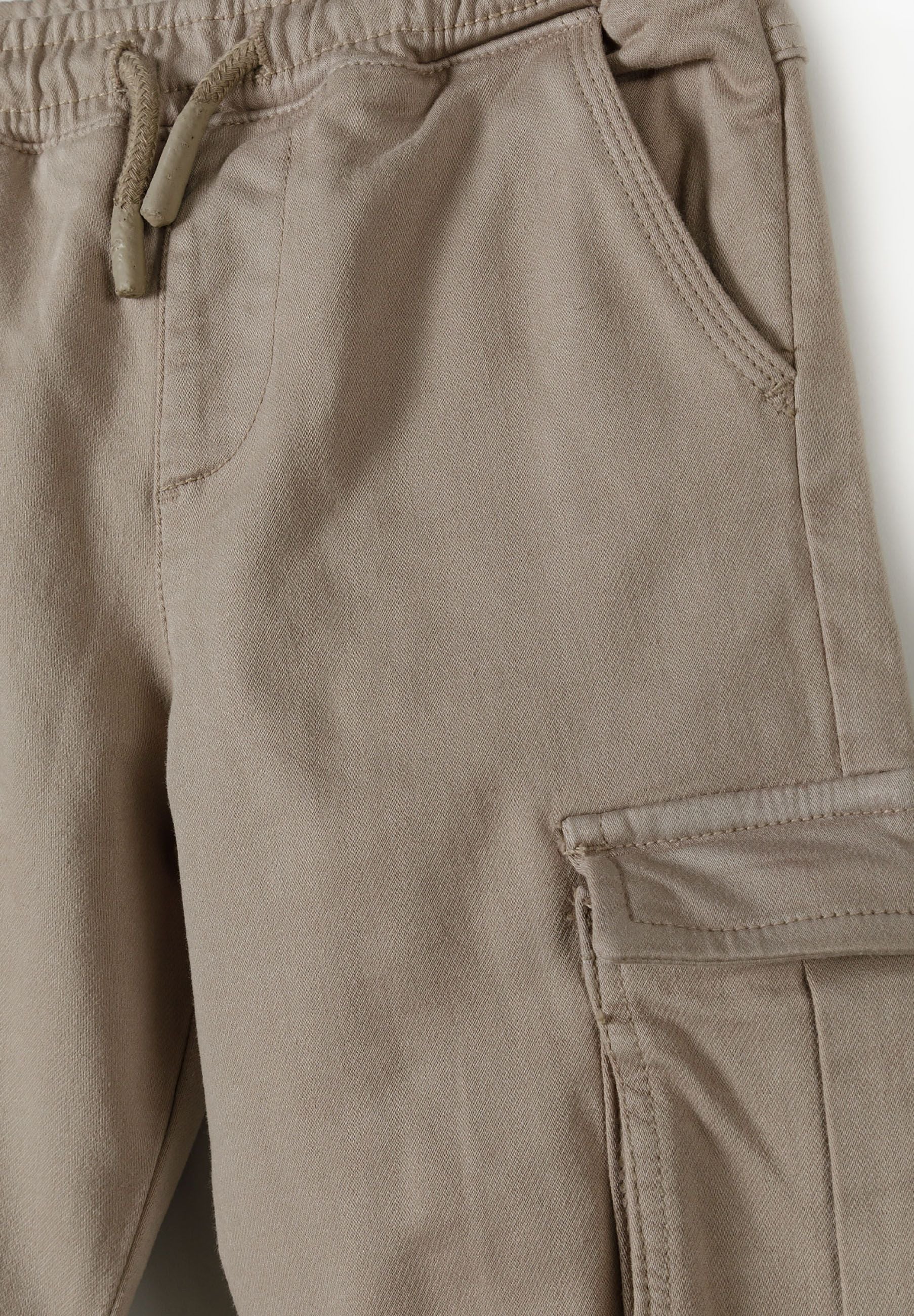 Chłopięce spodnie cargo beżowe z kieszeniami 2-14 lat