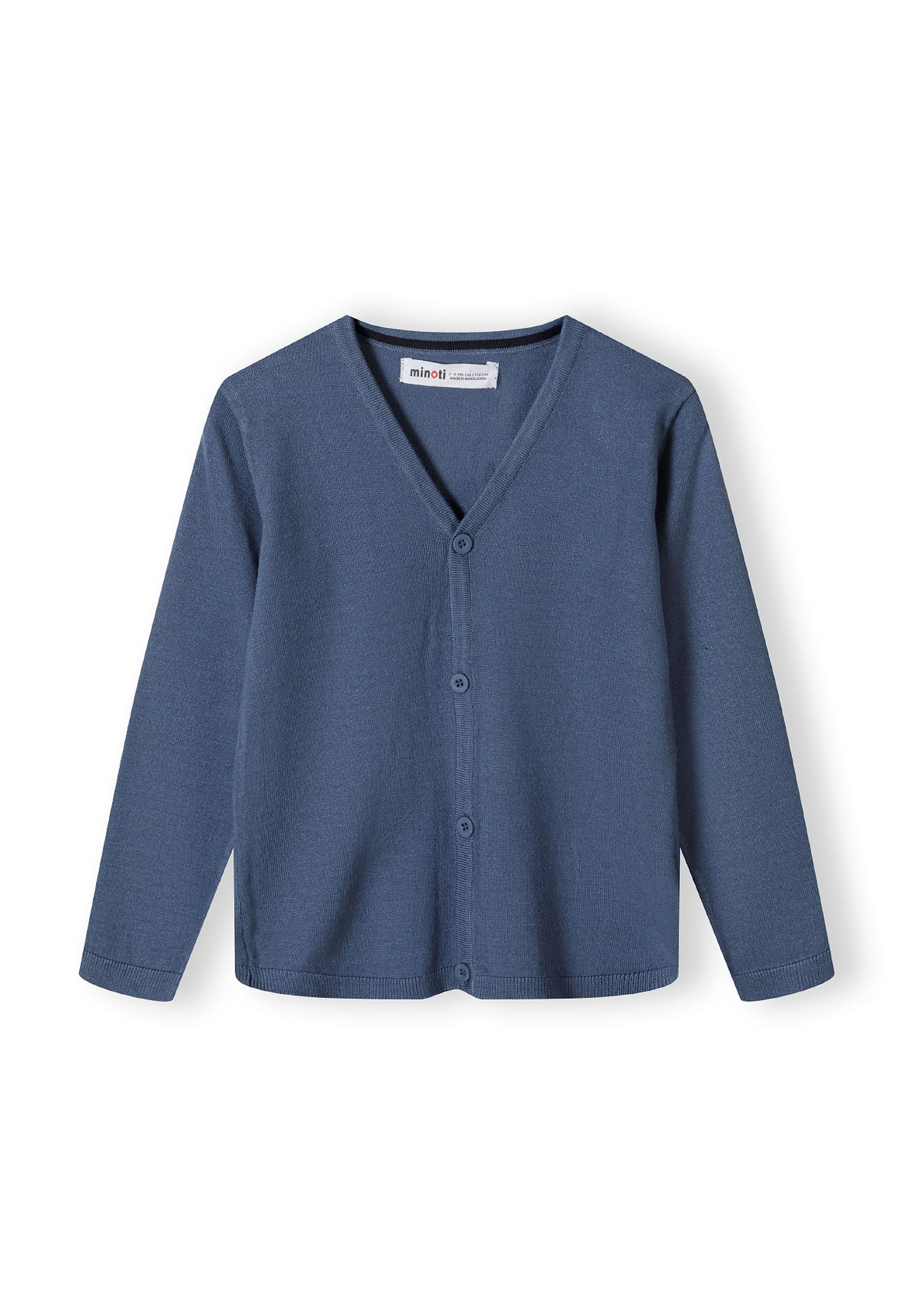 Rodzice doceniają wszechstronność i praktyczność tego niebieskiego kardiganu z cienkiego dziania. Klasyczny kolor i tradycyjny krój sprawiają, że jest odpowiedni do szkoły, na co dzień lub podczas codziennych aktywności, łącząc praktyczność z ponadczasowym stylem. Żebrowane wykończenia na mankietach i dole pomagają zachować kształt i trwałość, dzięki czemu ubranie przez długi czas zachowuje swój wygląd. Wysokiej jakości mieszanka wiskozy zapewnia długotrwałe użytkowanie mimo wielu prań, zachowując jednocześnie gładką, lekką fakturę. Krój łączy dopasowaną strukturę z luźnym komfortem, pozwalając na wszechstronne stylizacje na koszule lub t-shirty, zapewniając wygodę i przewiewność podczas noszenia.
