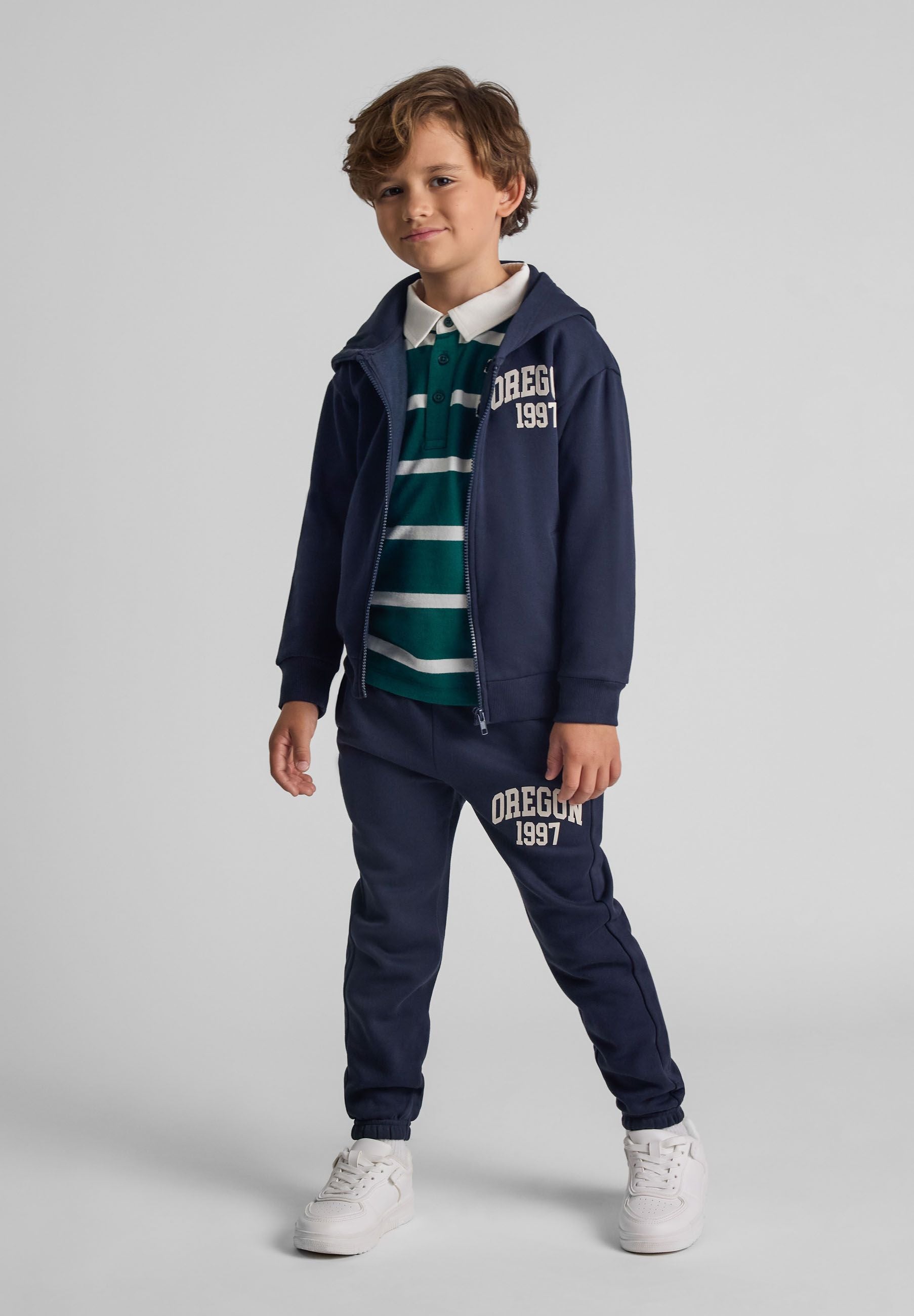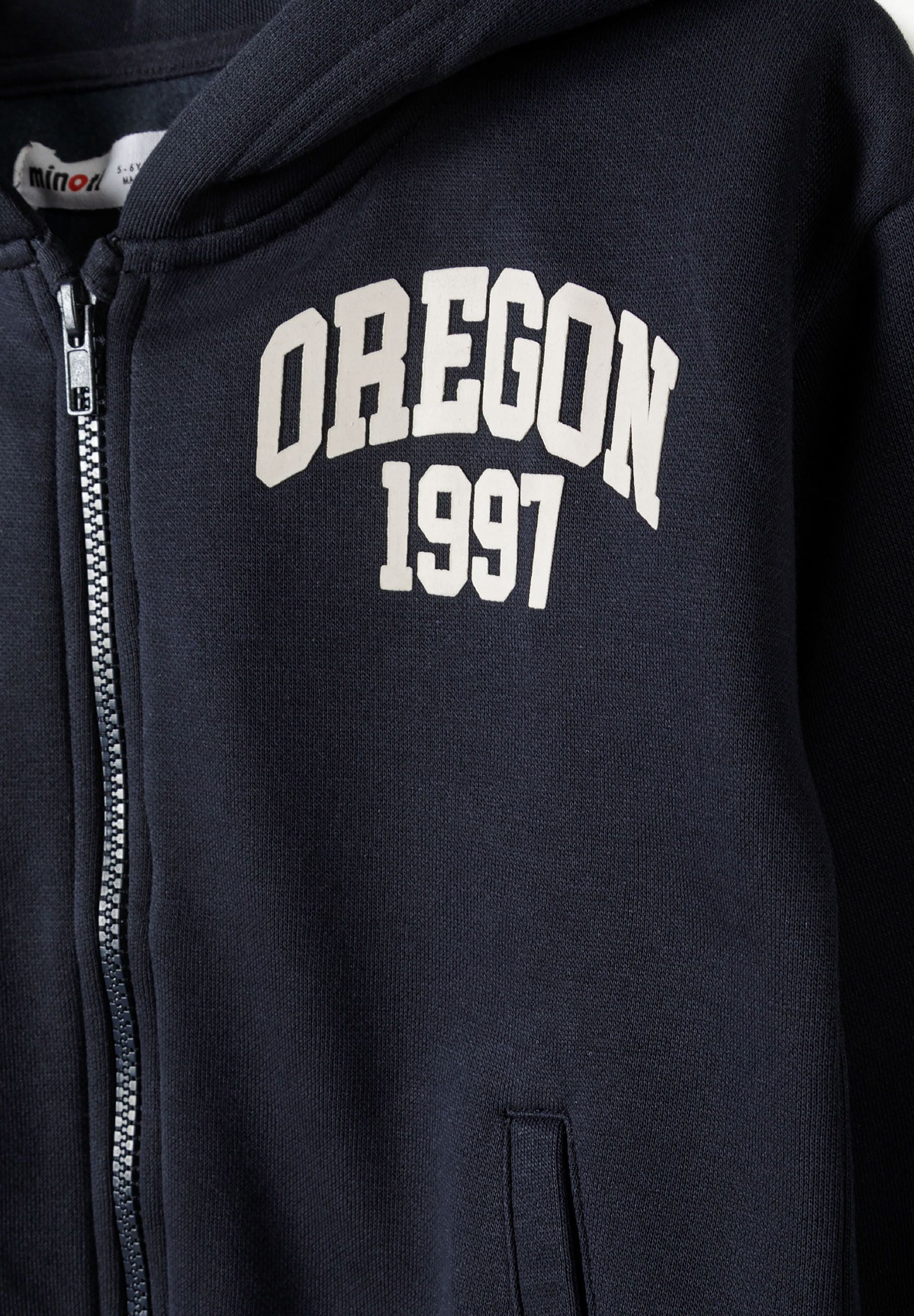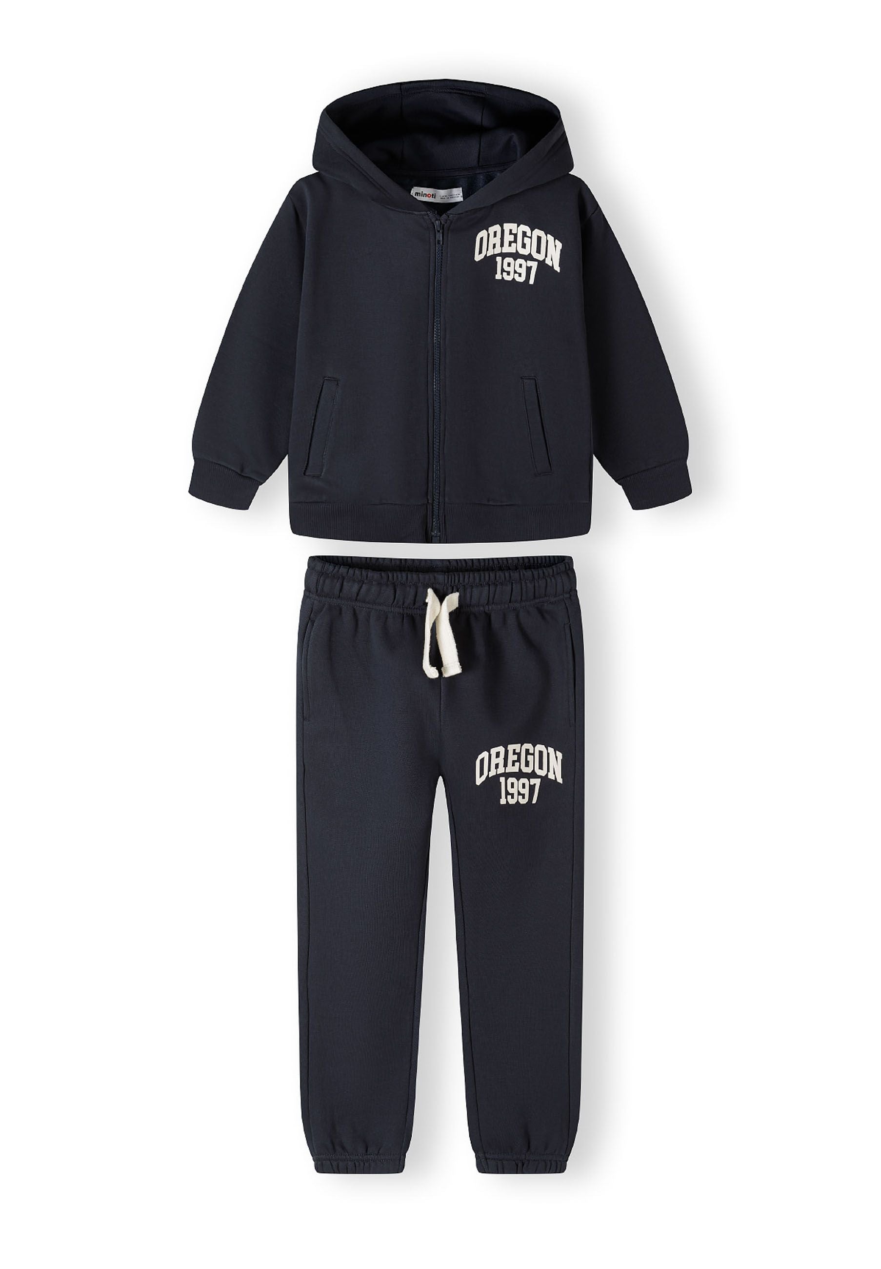 Dres chłopięcy z rozpinaną bluzą z kapturem granatowy nadrukiem 2-8 lat