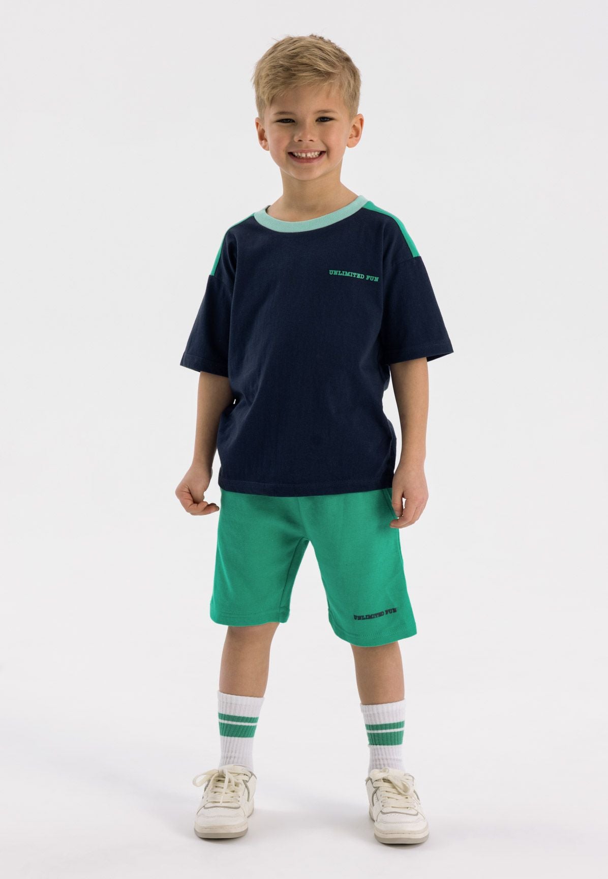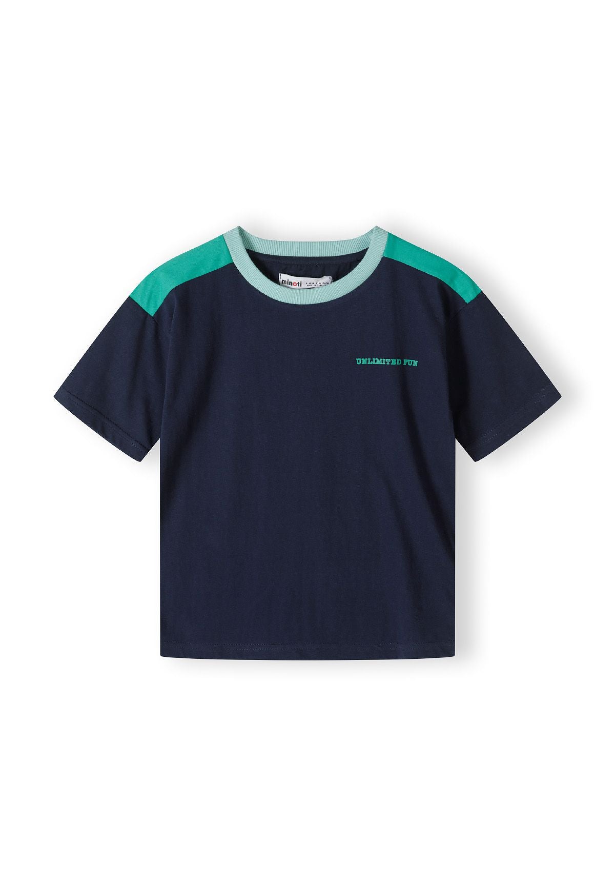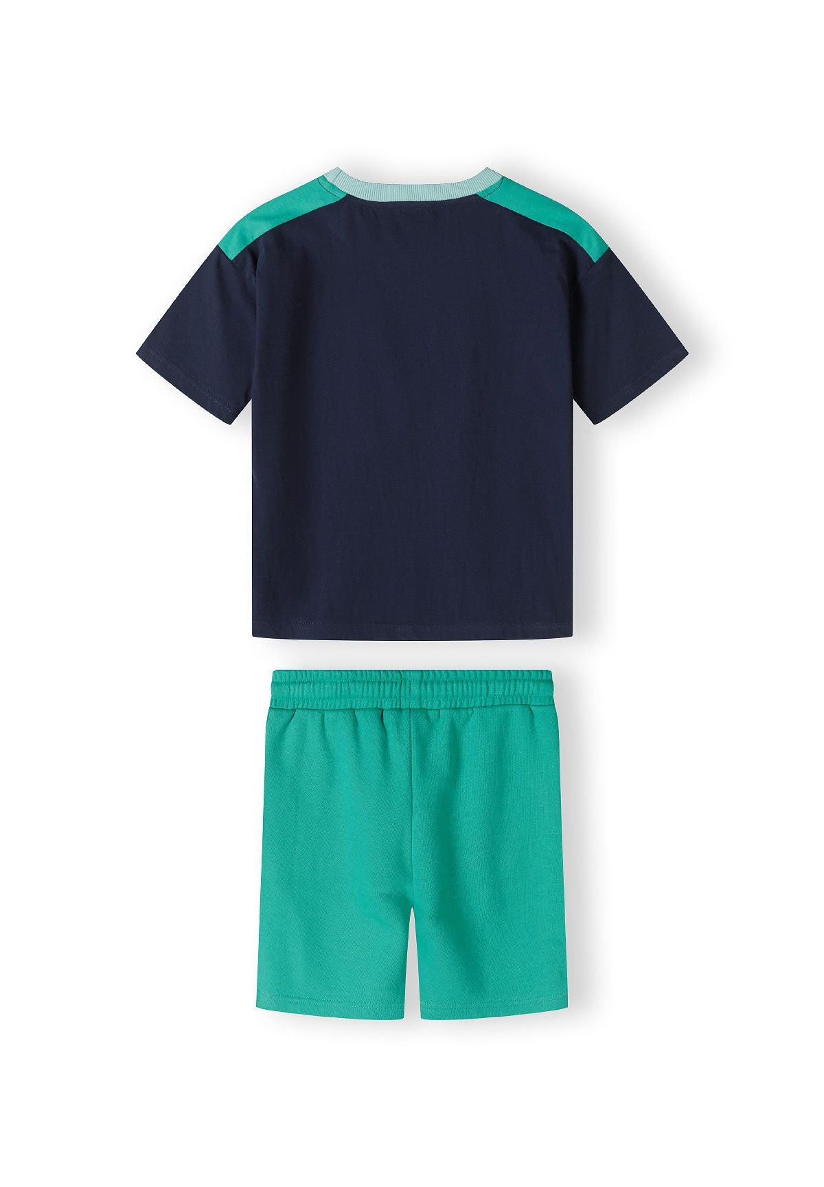 Komplet chłopiecy t-shirt i shorty granatowo-zielony „Unlimited Fun” 9 m-8 lat