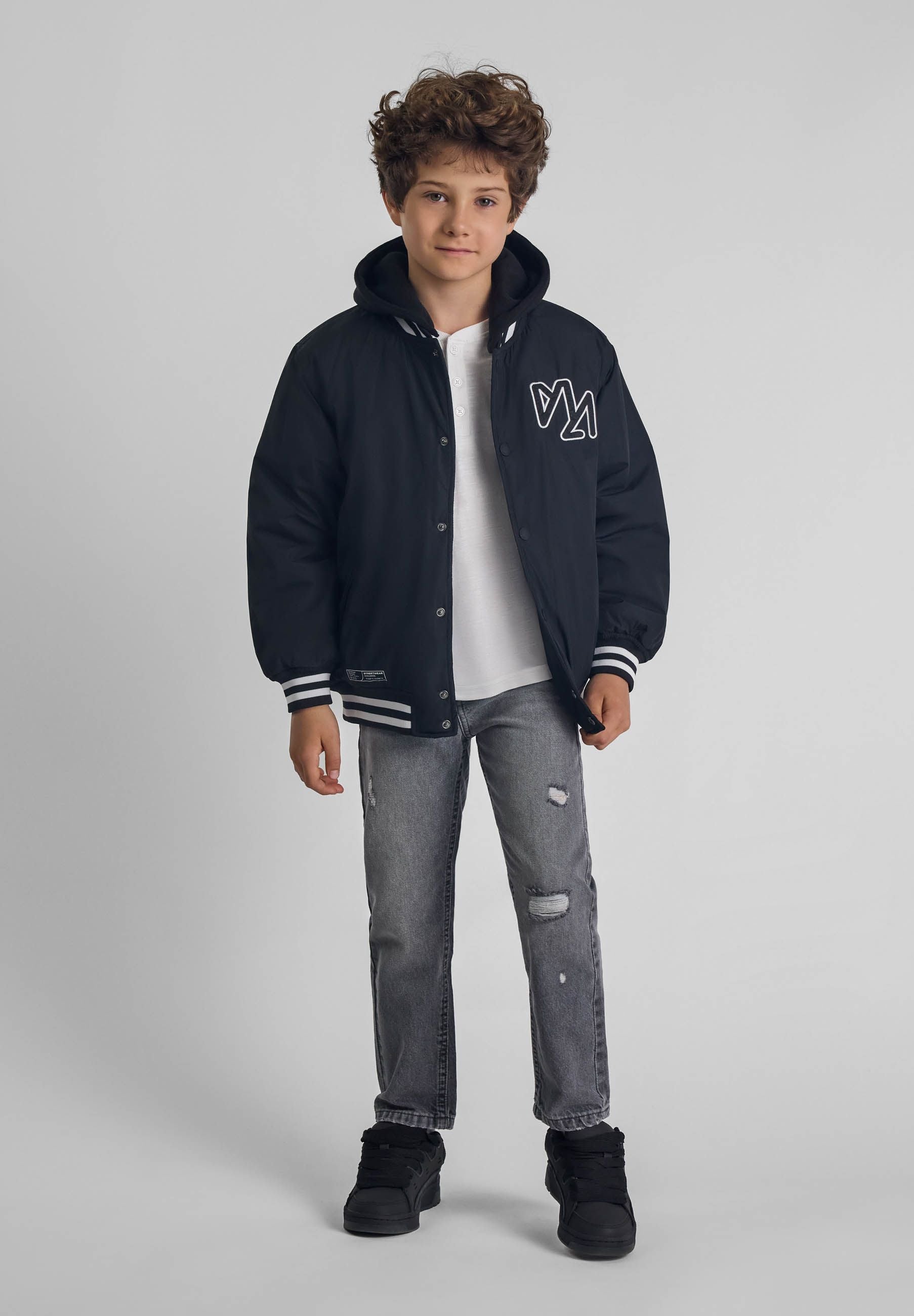 Kurtka baseball z haftem chłopięca czarna 2-14 lat