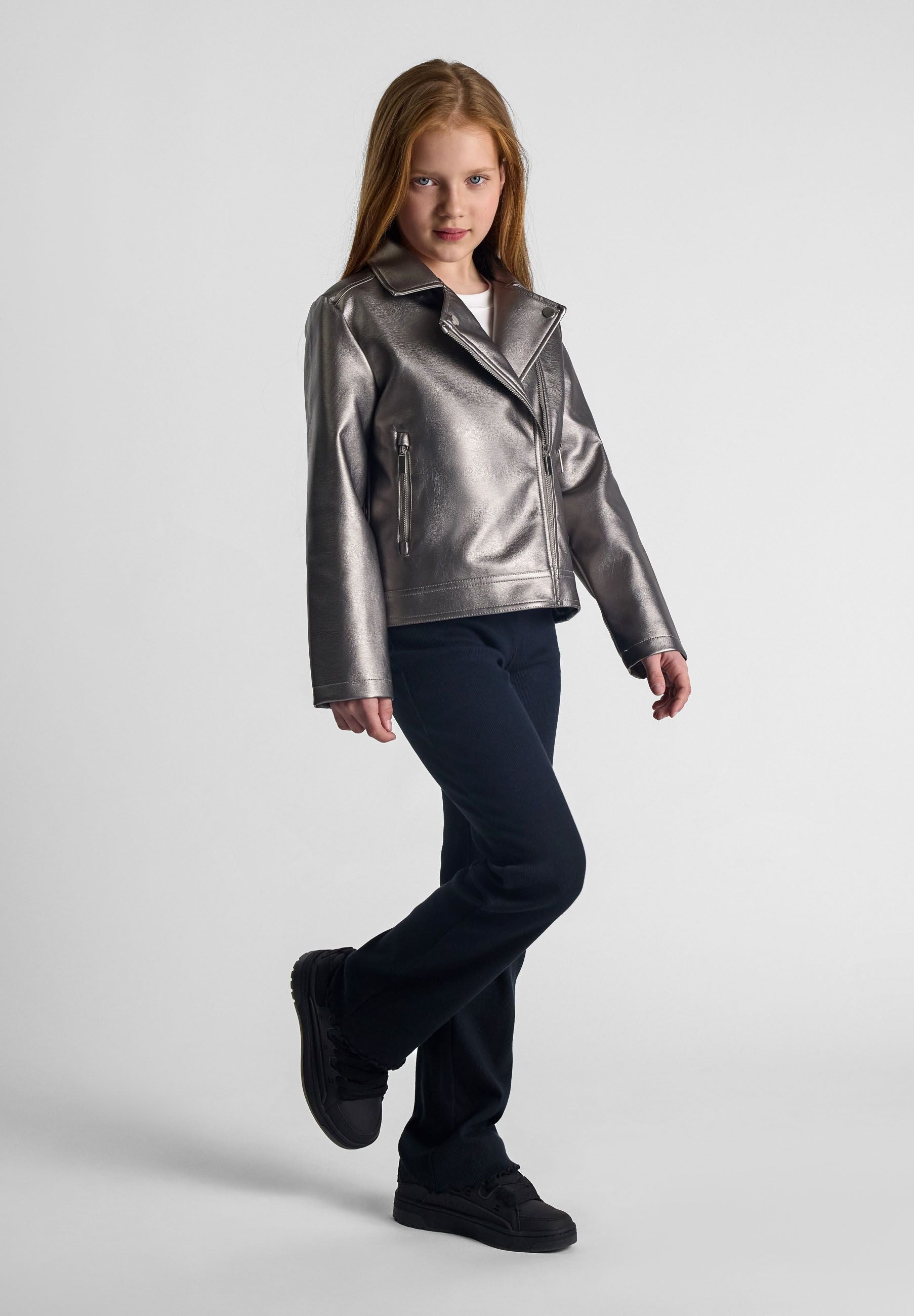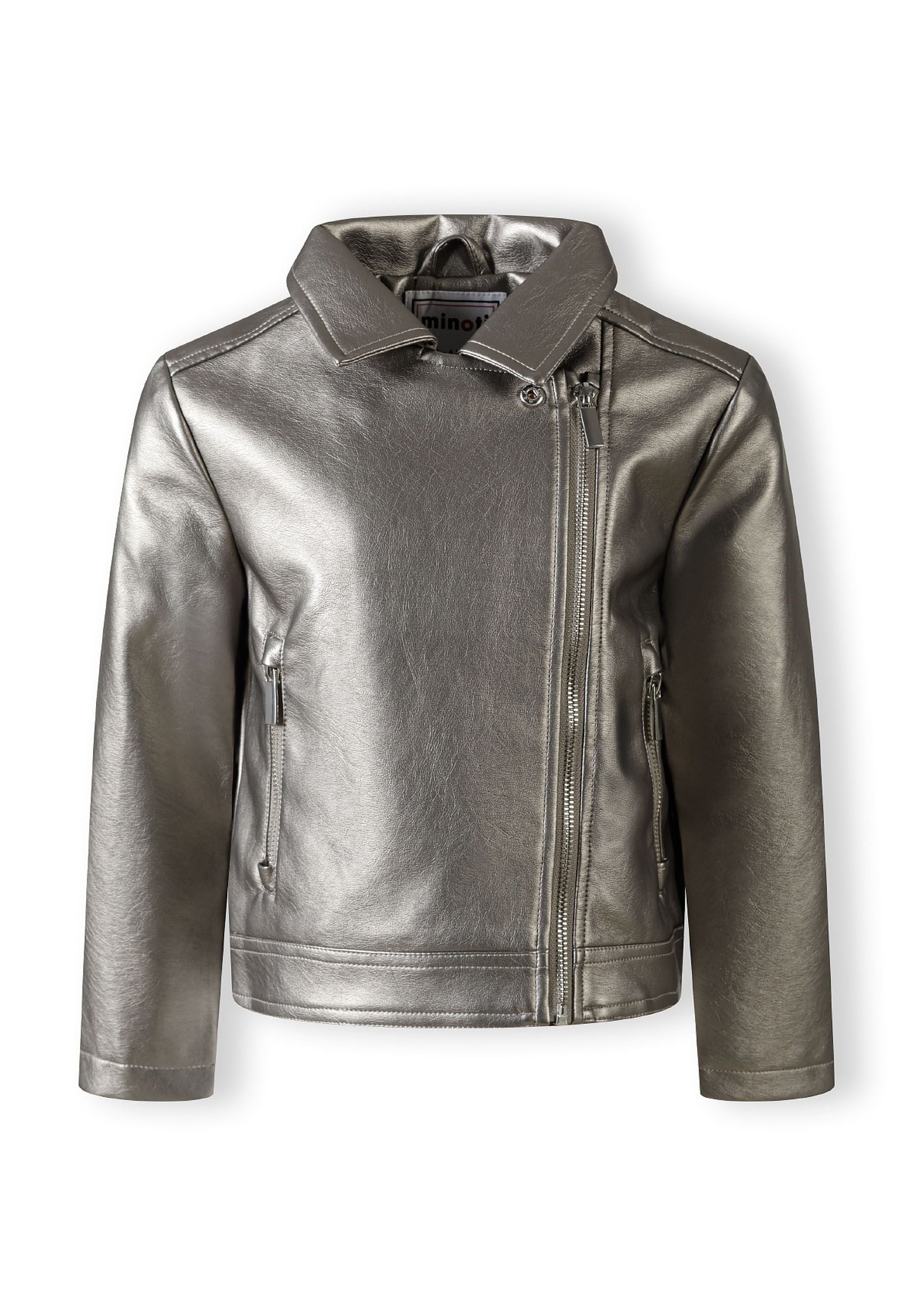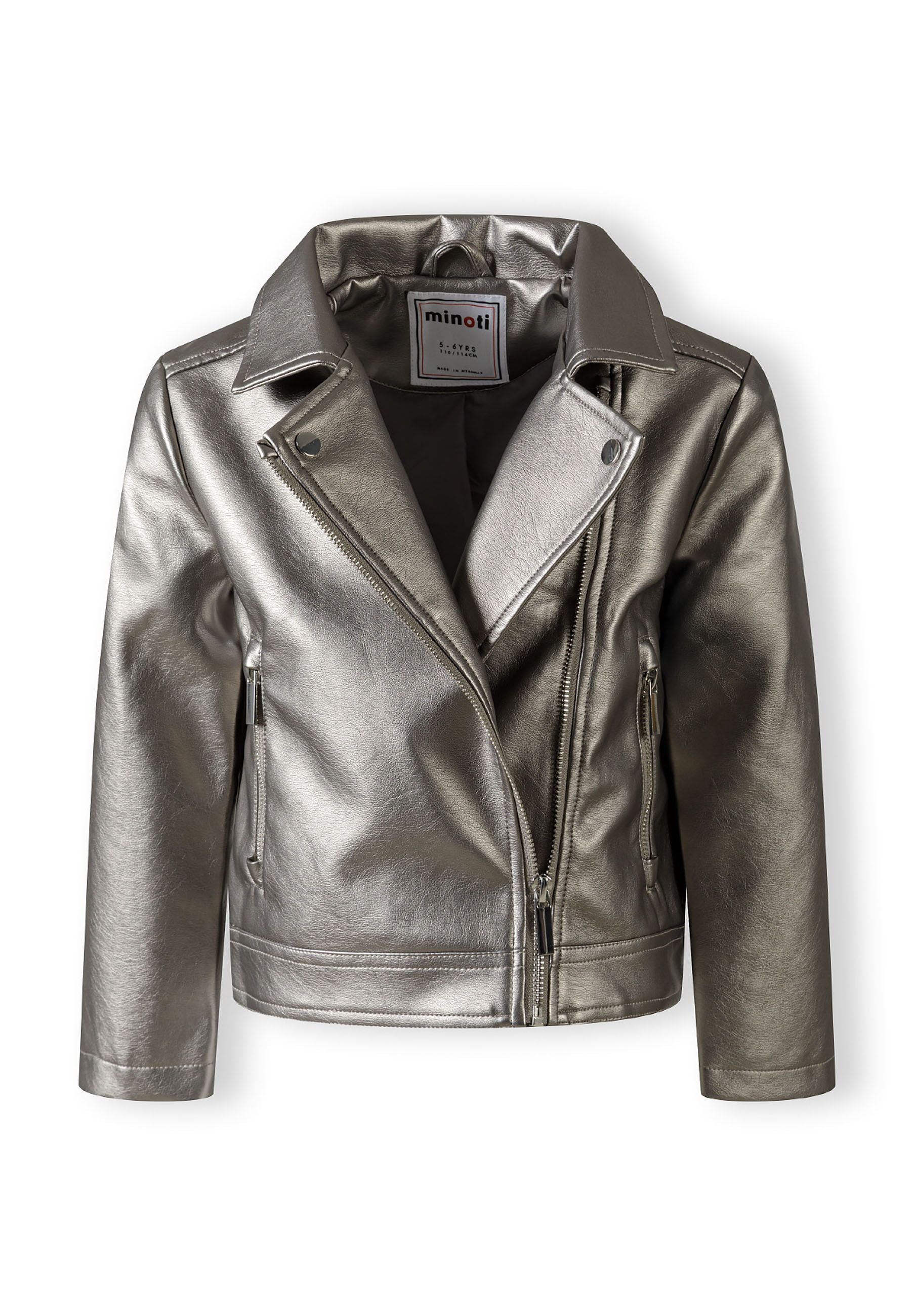 Kurtka biker dziewczęca srebrna 2-14 lat