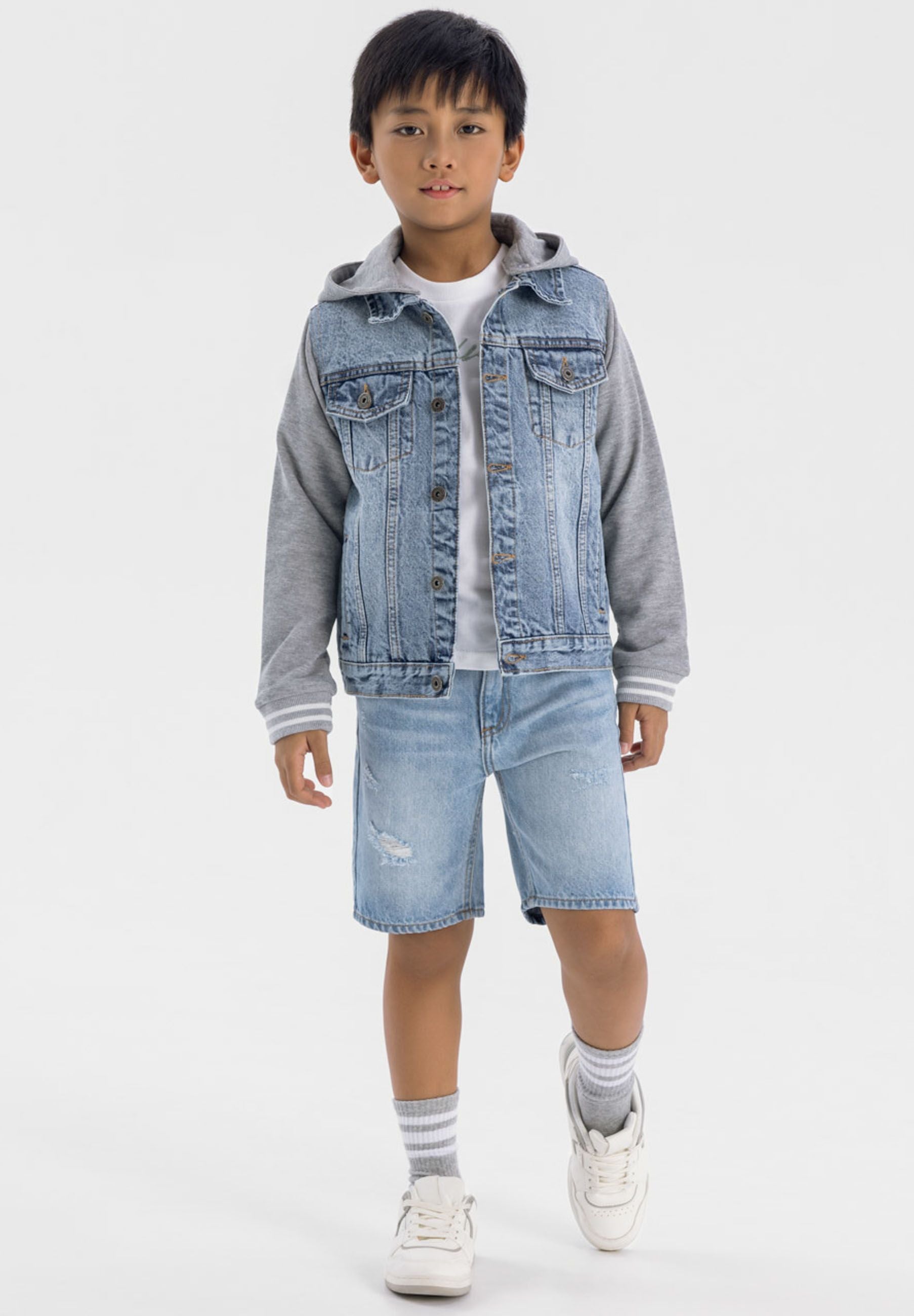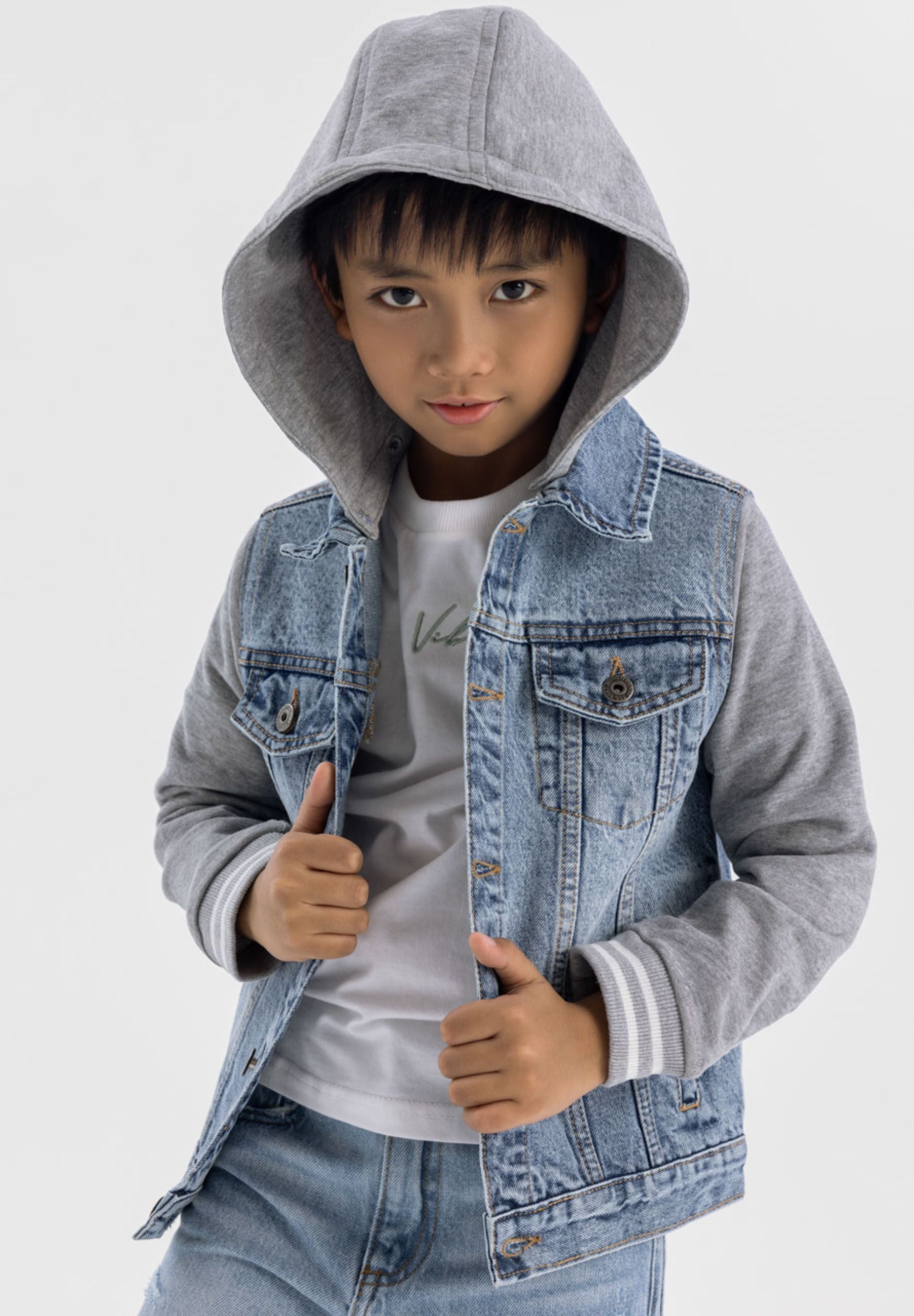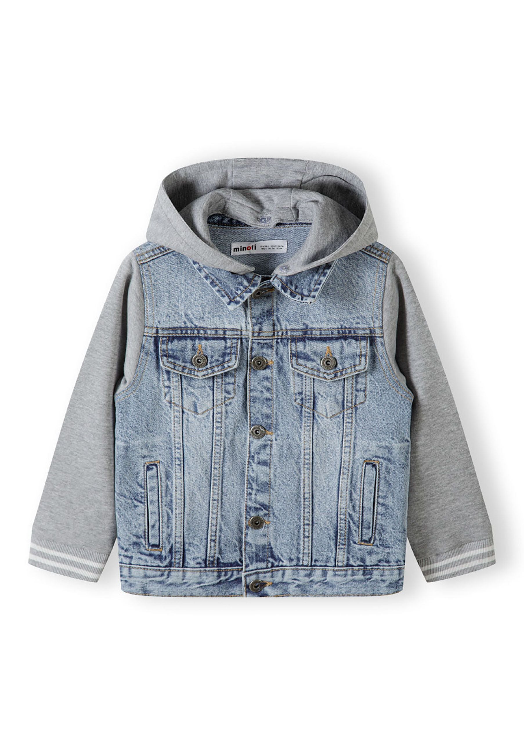 Kurtka chłopięca jeansowa z odpinanym kapturem szare rękawy 2-14 lat