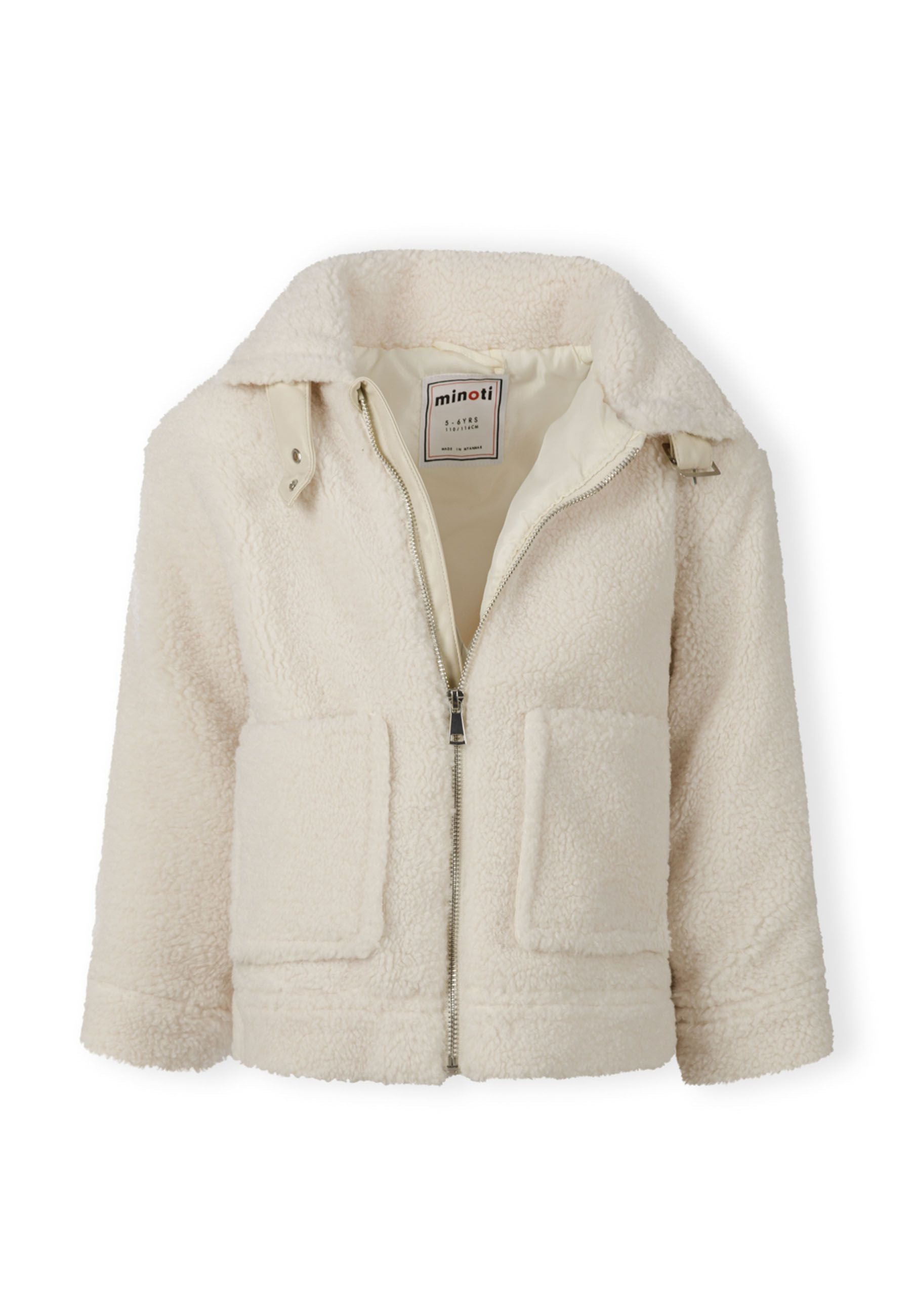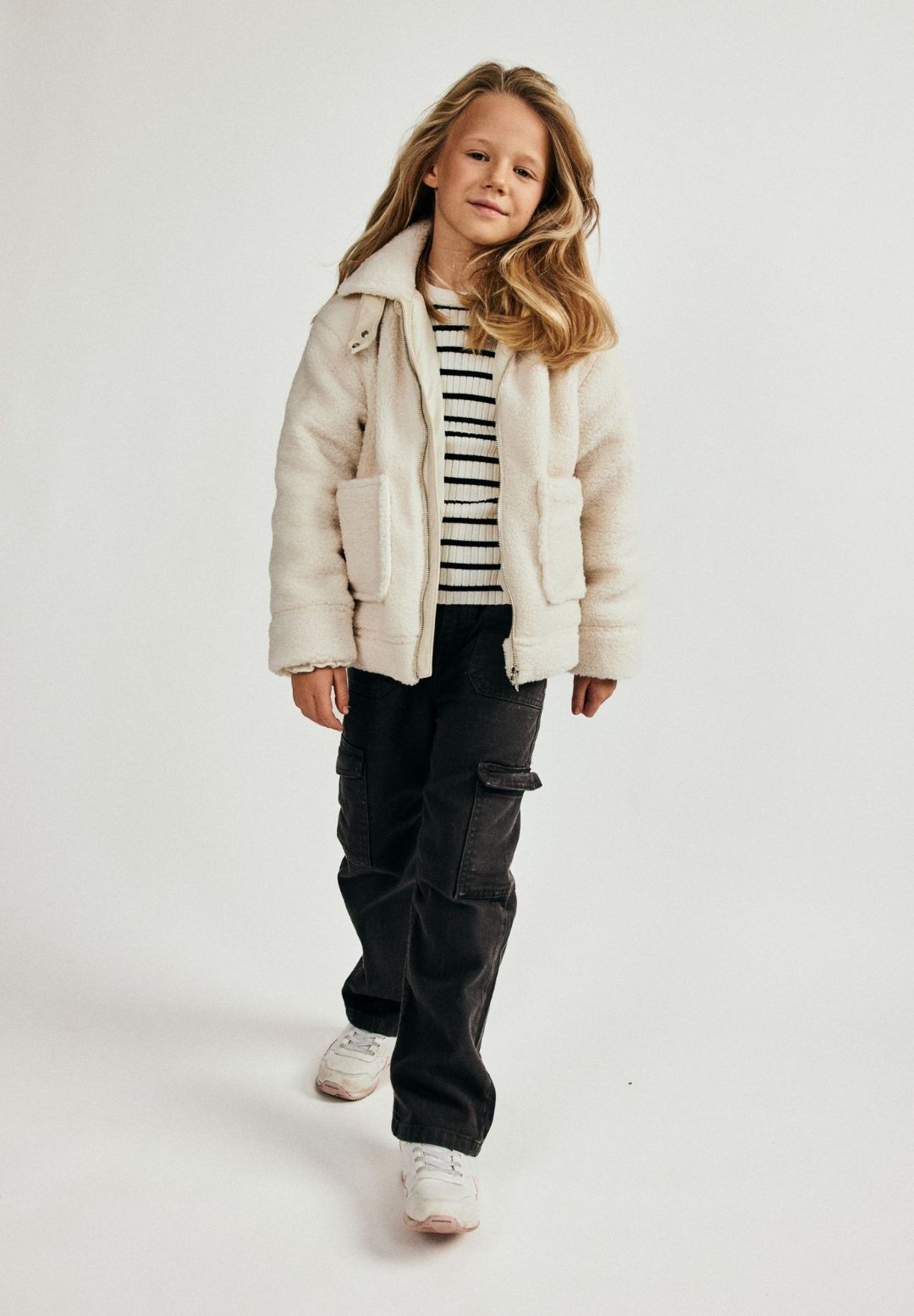 Kurtka dla dziewczynki miś z kołnierzem kremowa 2-14 lat