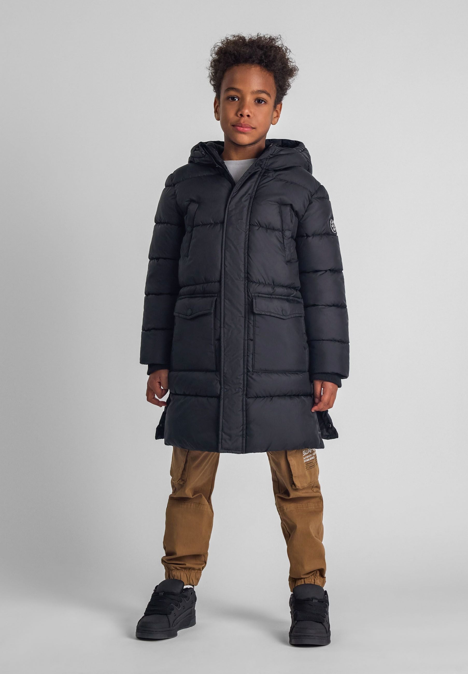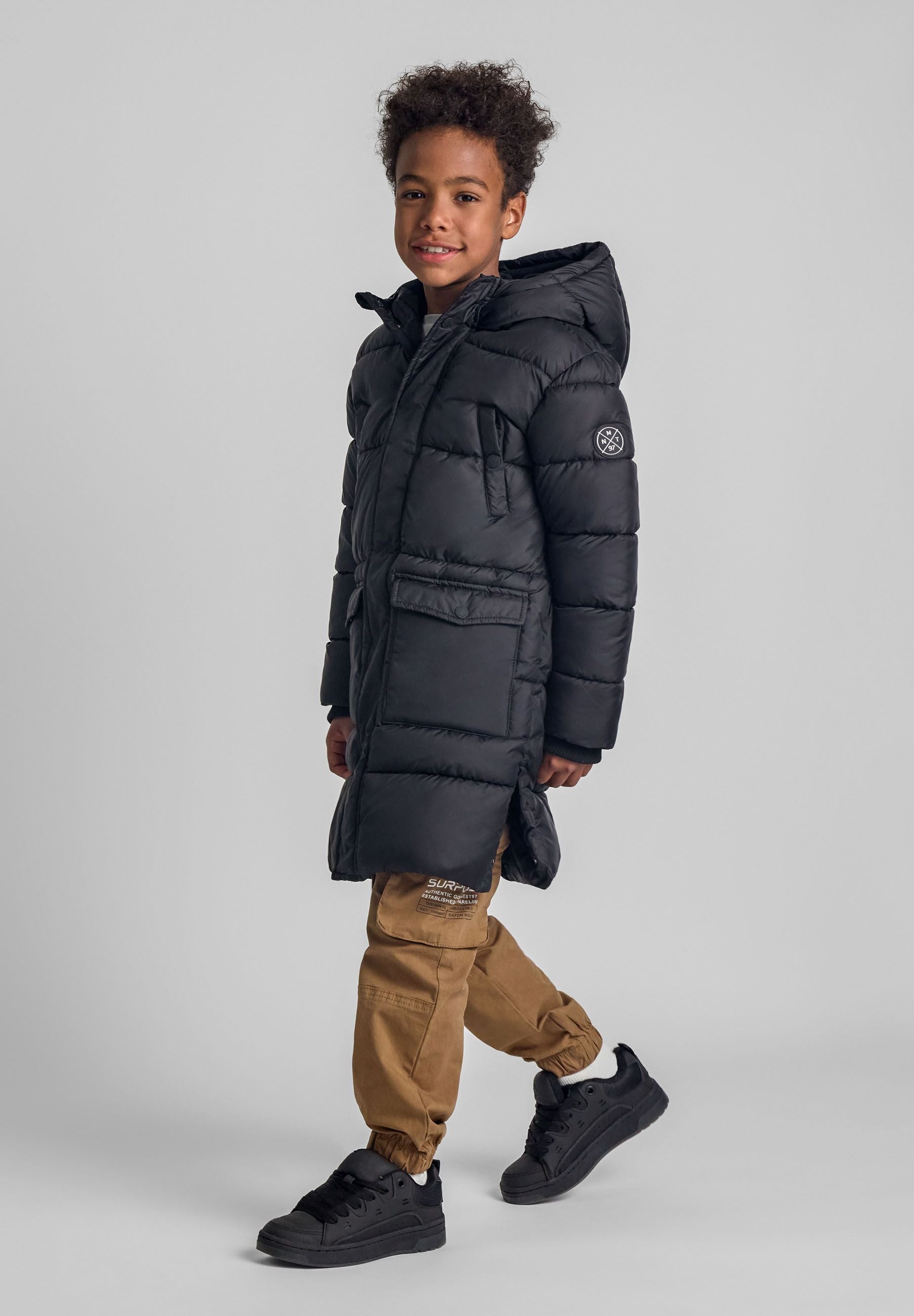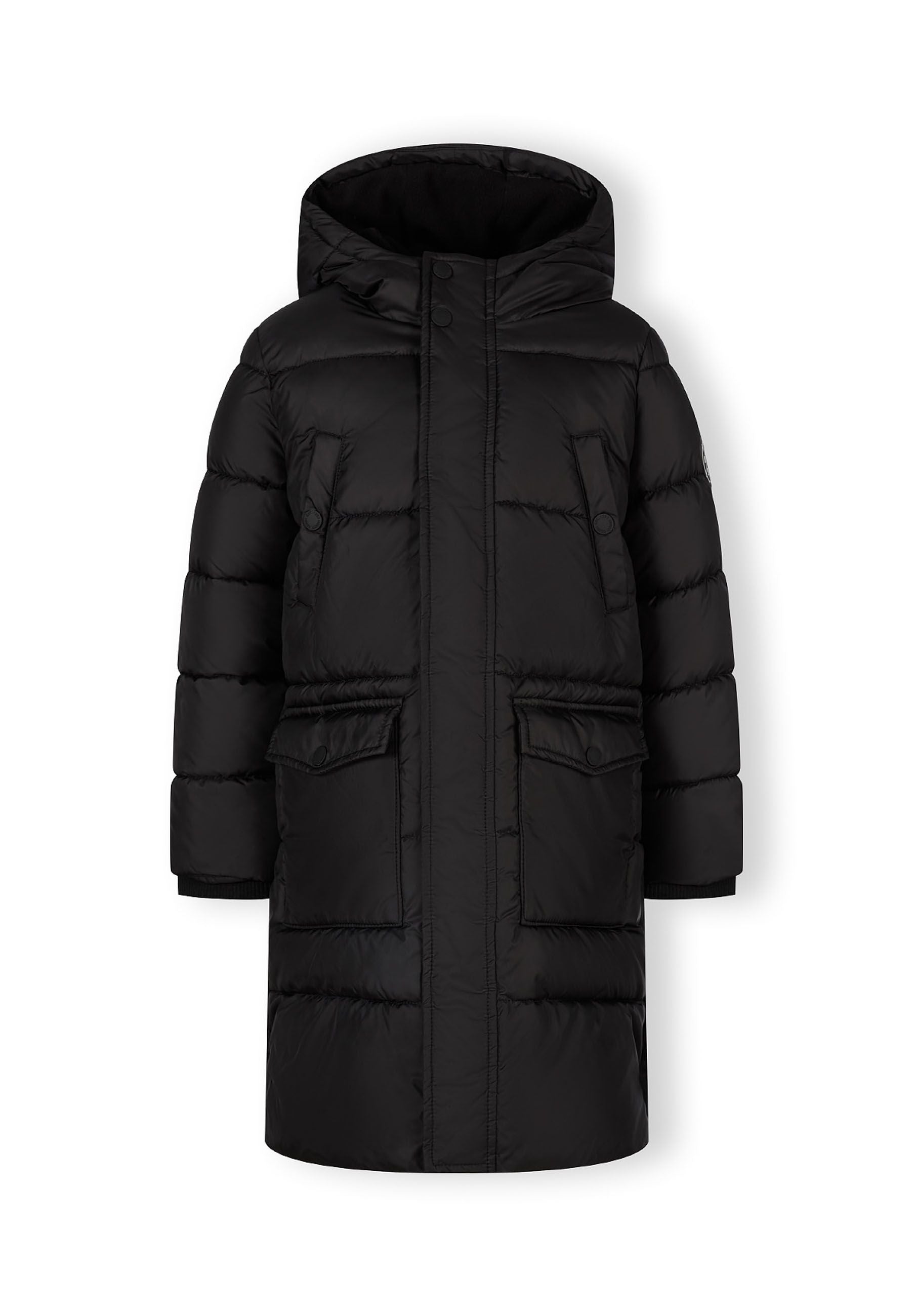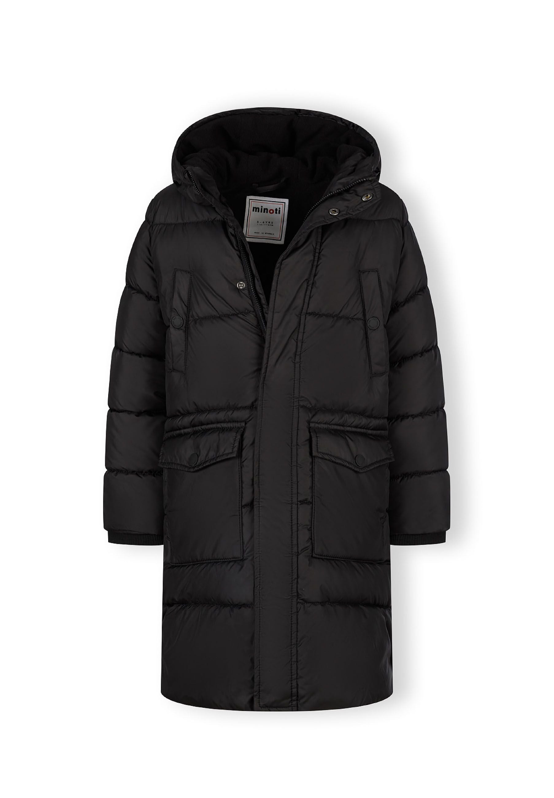 Ocieplana kurtka czarna z długim fasonem i odpinanym kapturem 2-14 lat