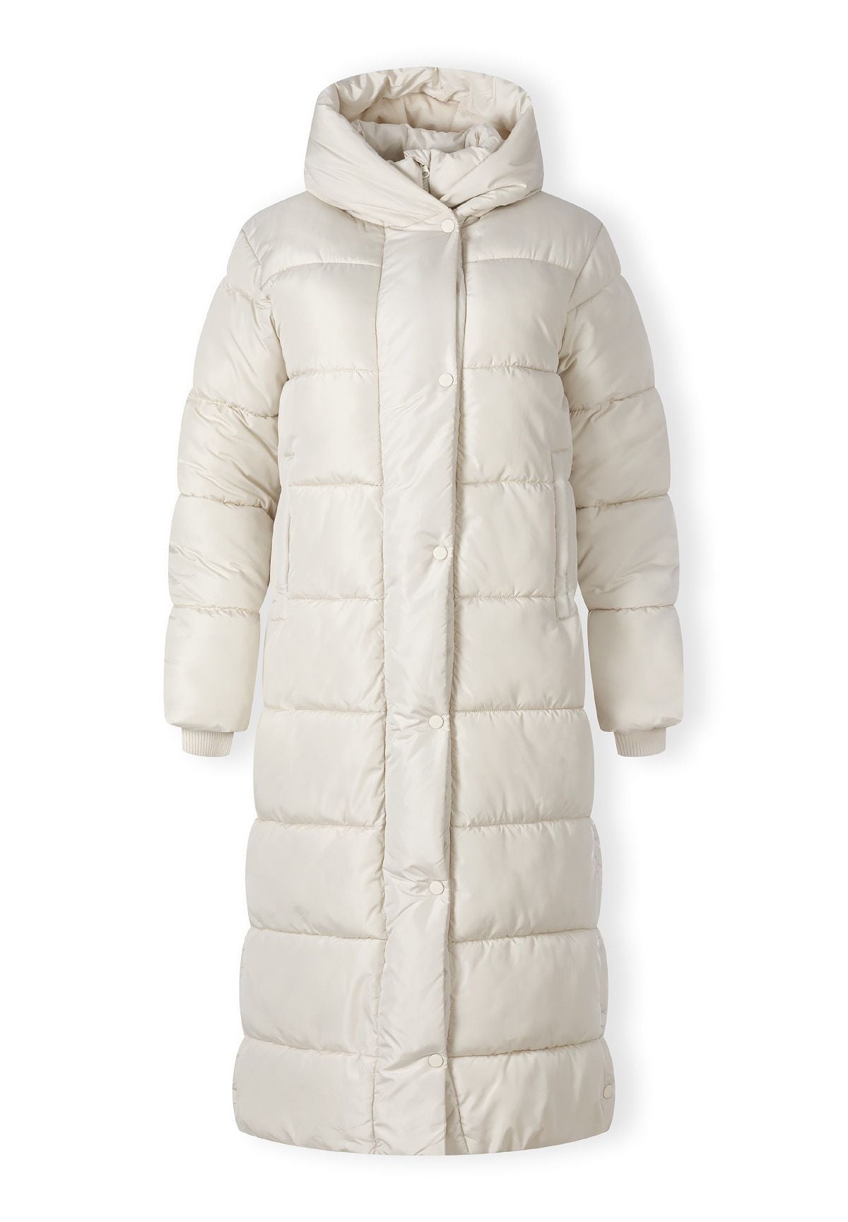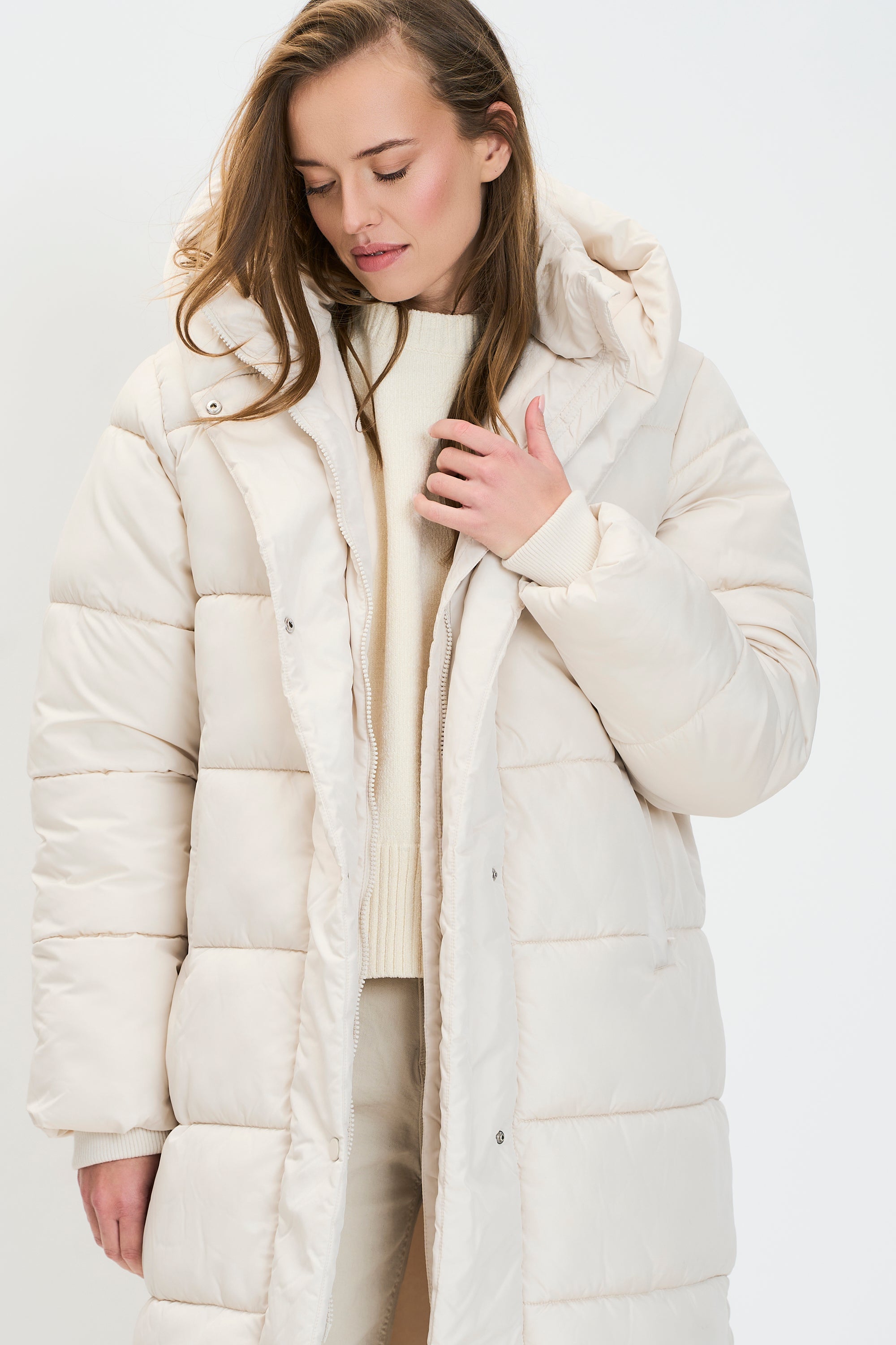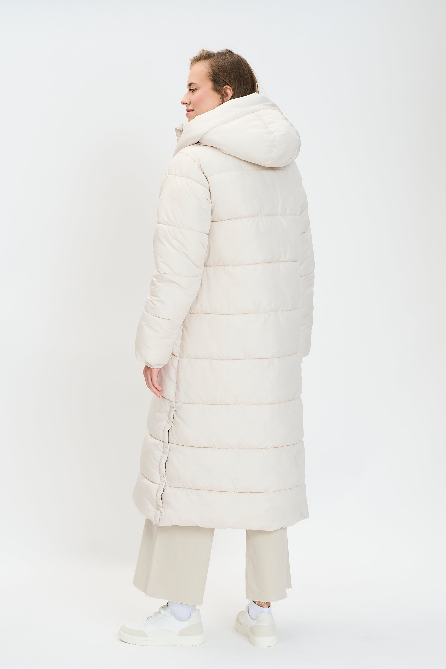 Ocieplana kurtka damska z długim fasonem do kolan beżowa XS-XL