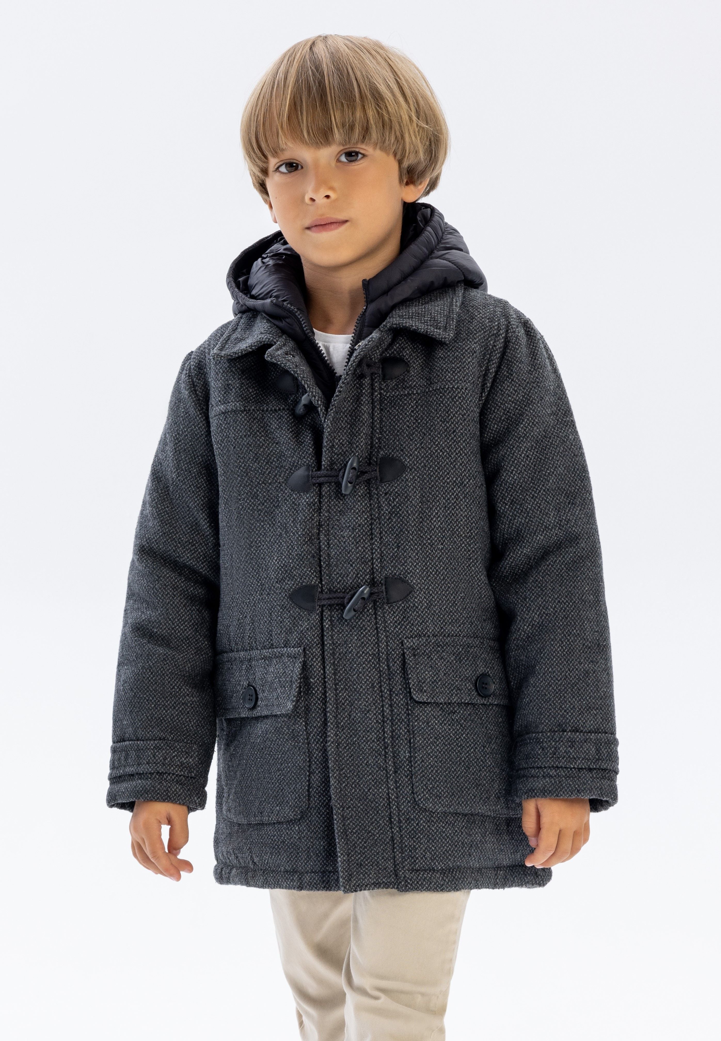 Płaszcz zimowy grafitowy z zabezpieczeniem i zapięciem typu toggle 2-14 lat