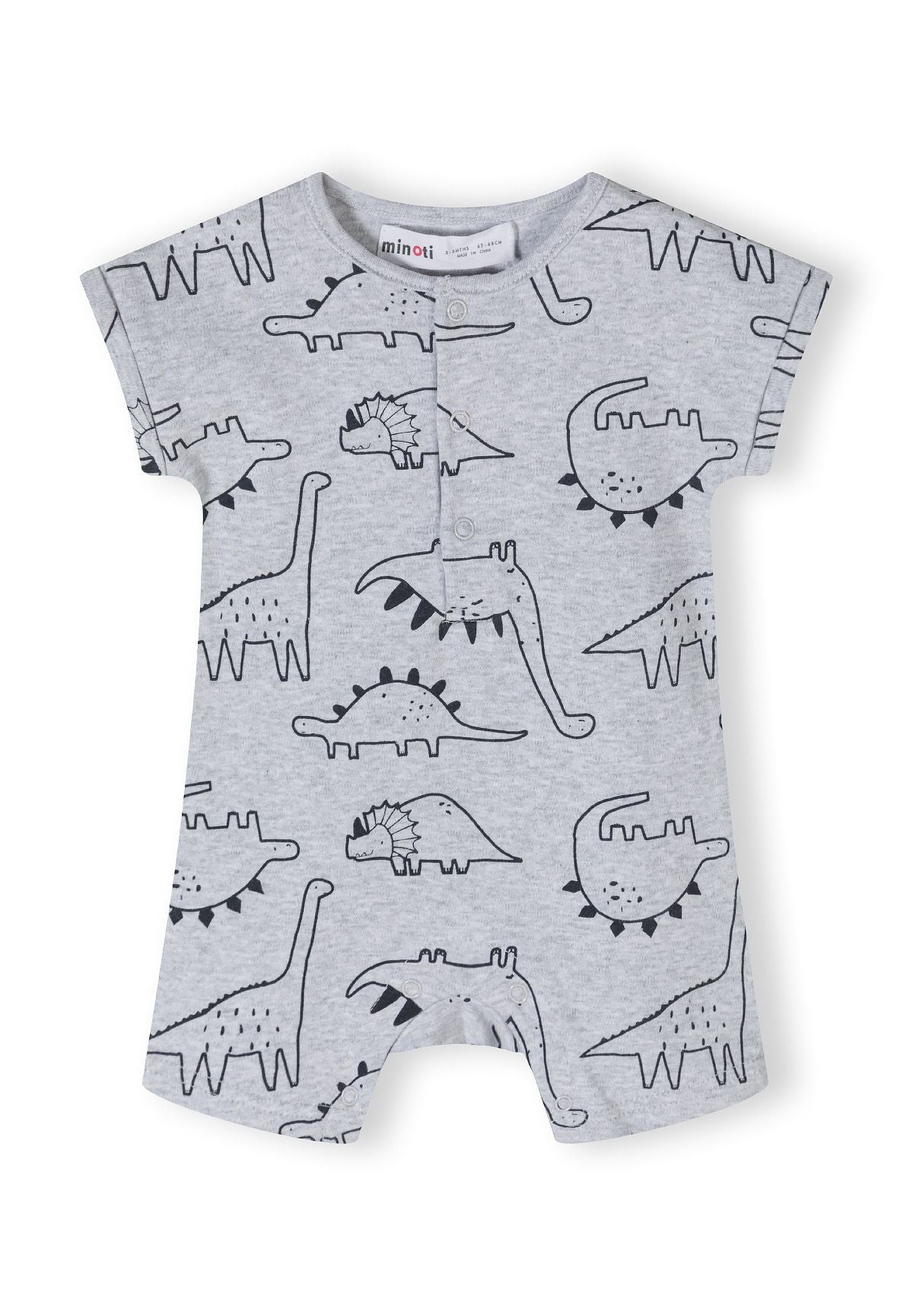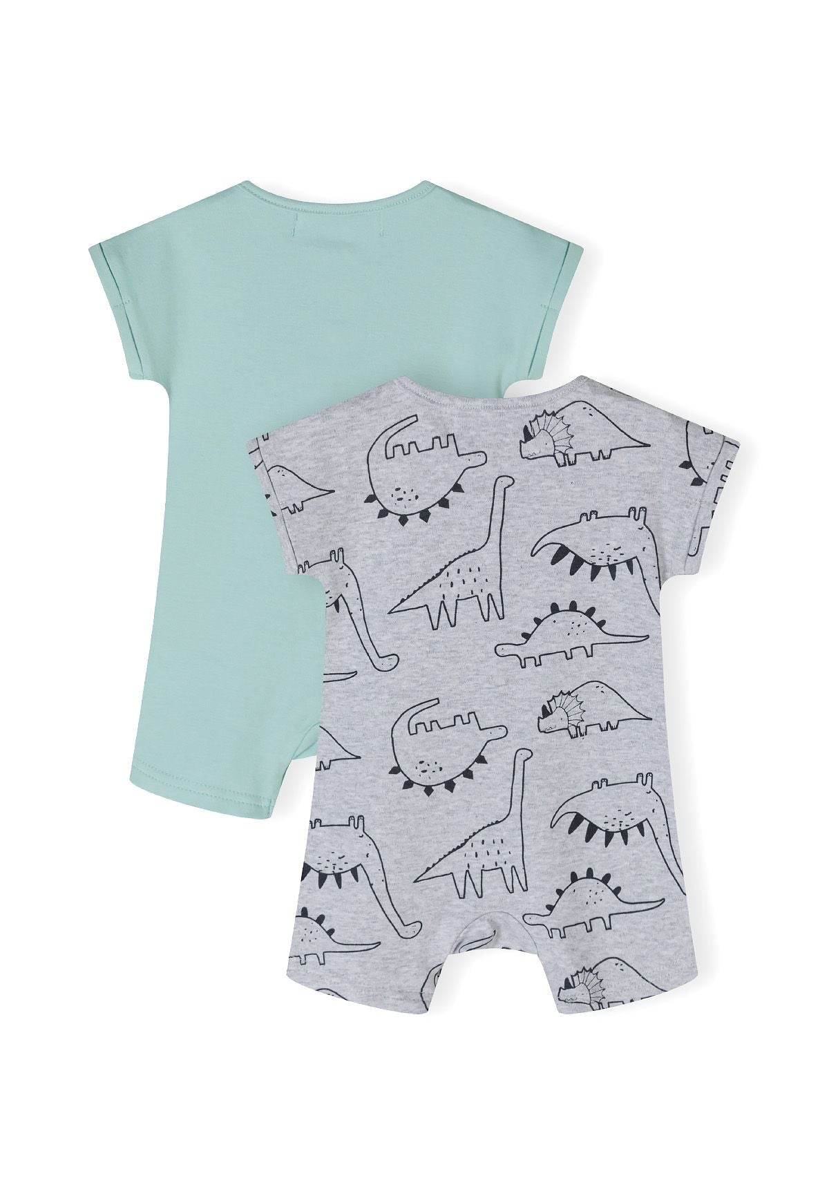 Rampersy chłopięce 2-pak z krótkimi dinozaurami i szarym melanż 0-24 m