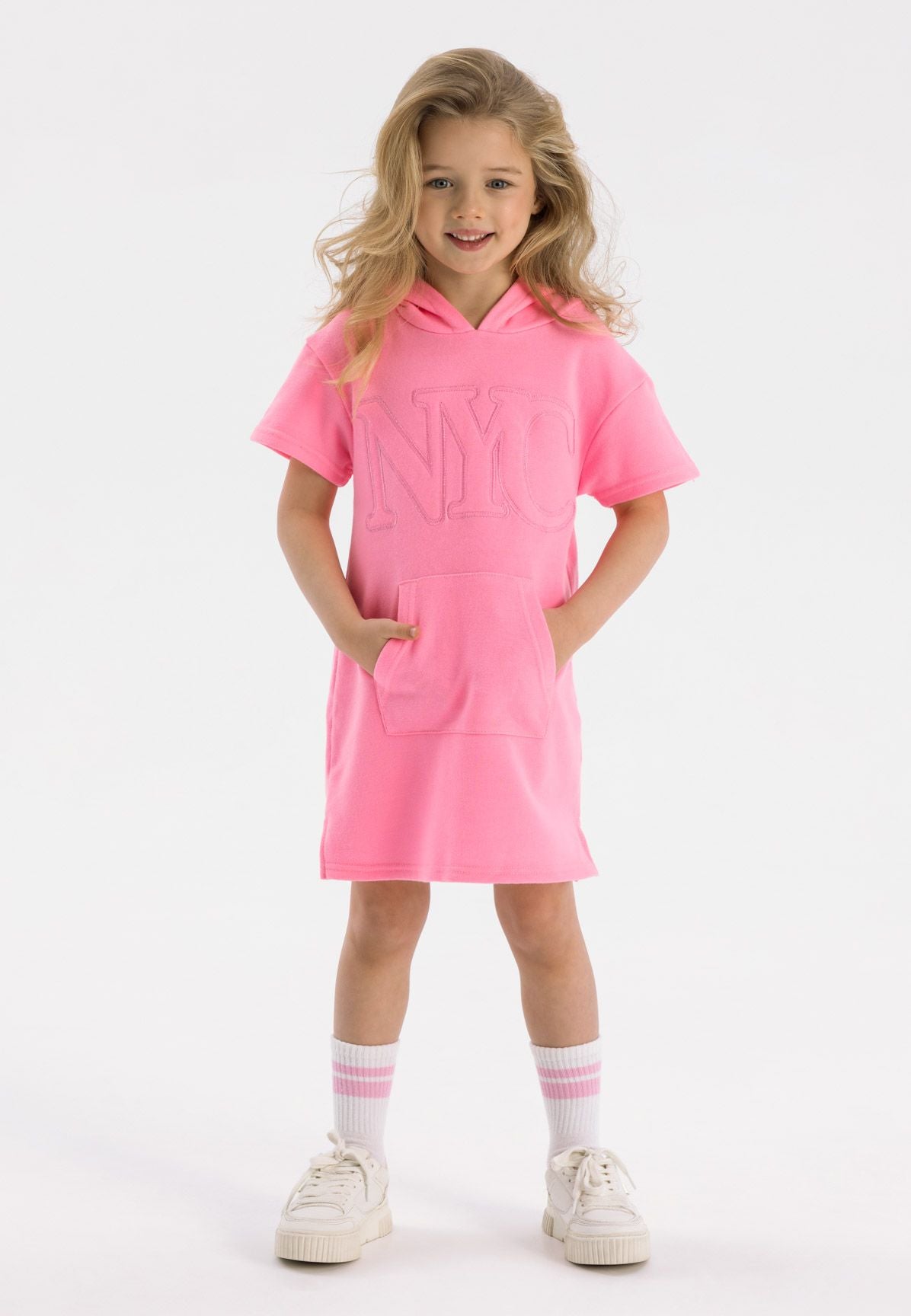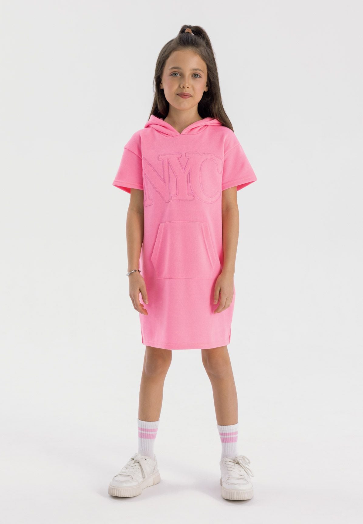Różowa dziewczęca sukienka z dekoltem i haftem NYC 3-14 lat