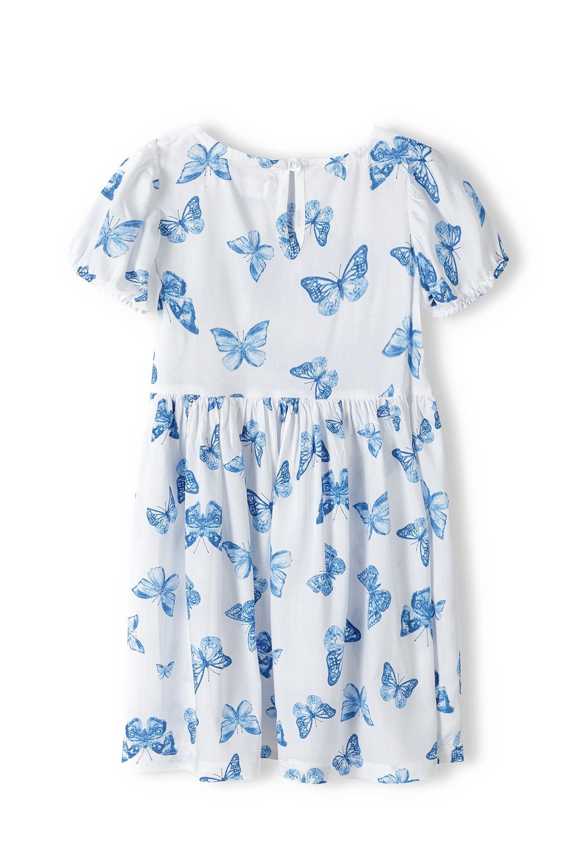 Sukienka dziewczęca z krótkim rękawem w motyle z wiskozy biała 3-8 lat