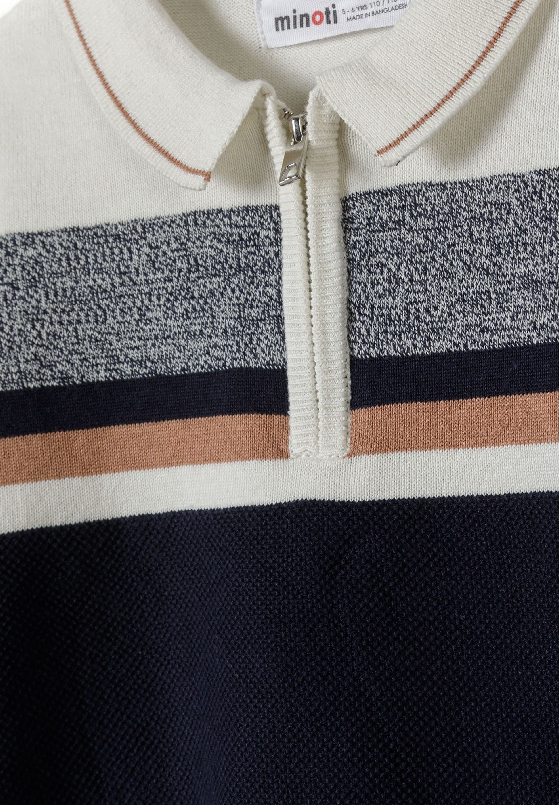 Boys polo style cotton sweater with stripes and zip cream 2-14y