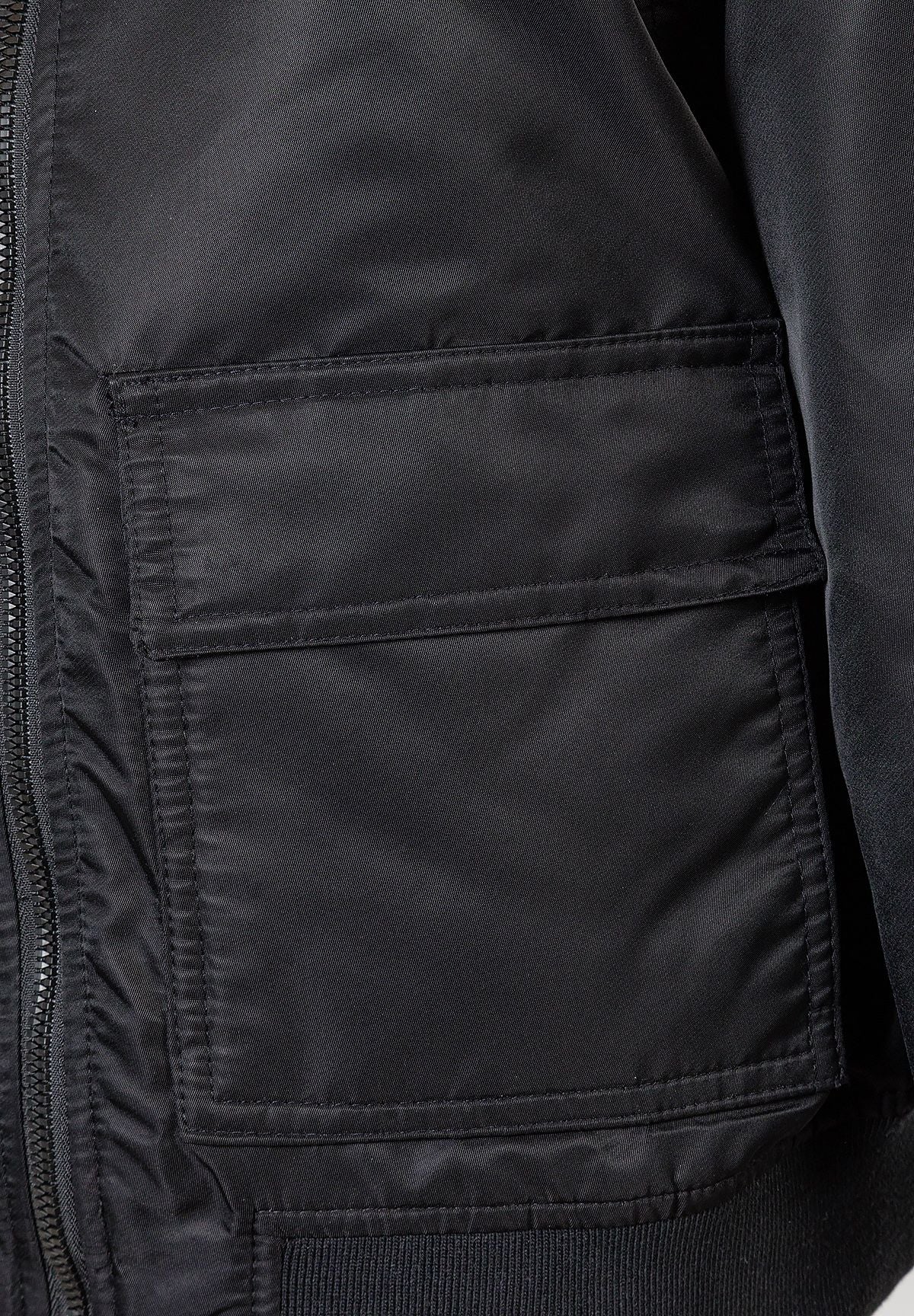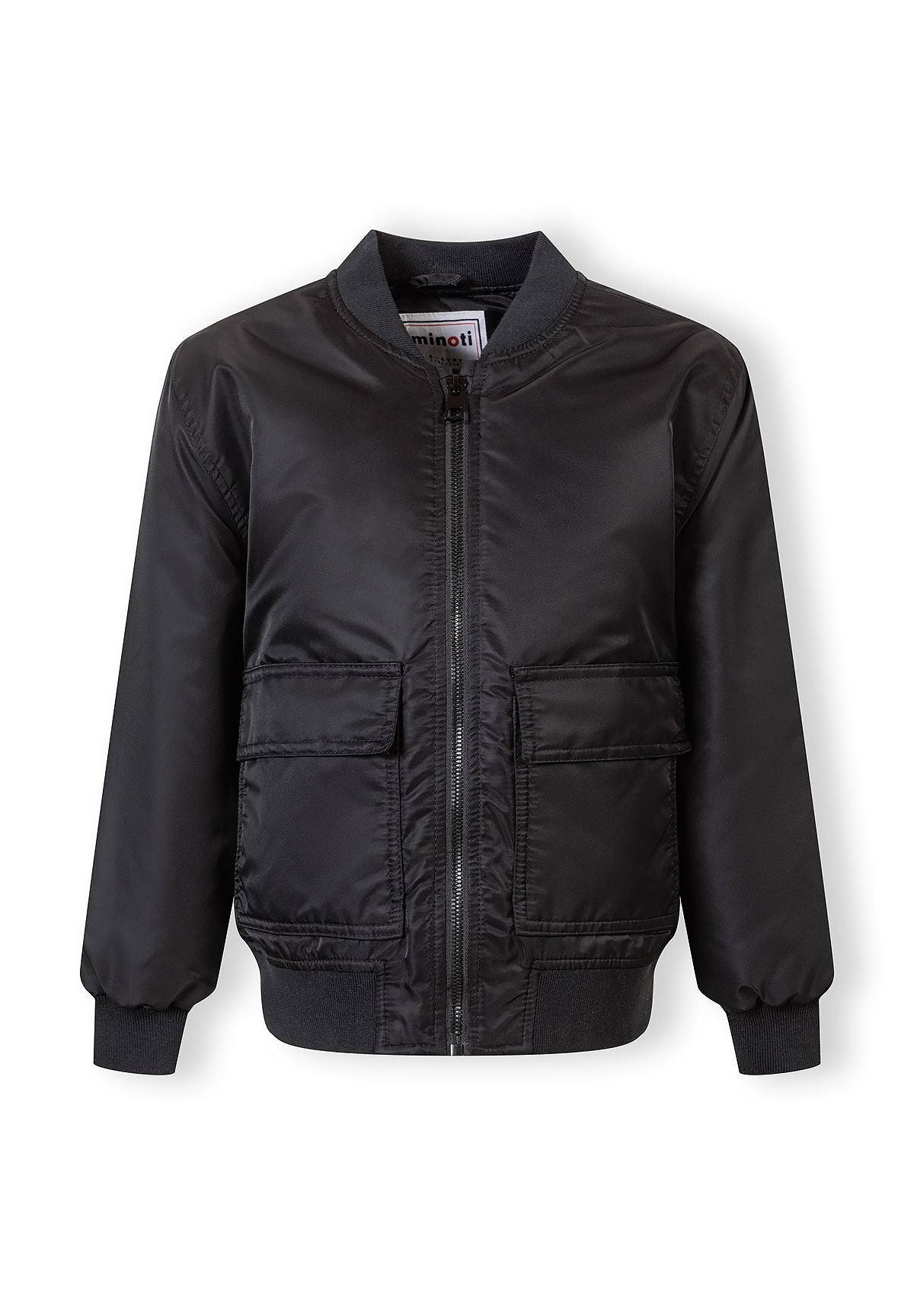 Boys black nylon bomber jacket with polyester padding utility pockets 3-15 years