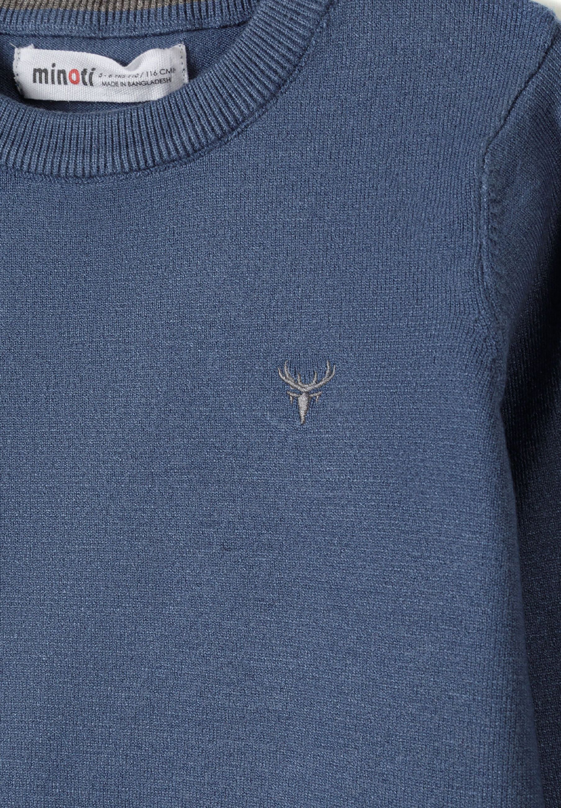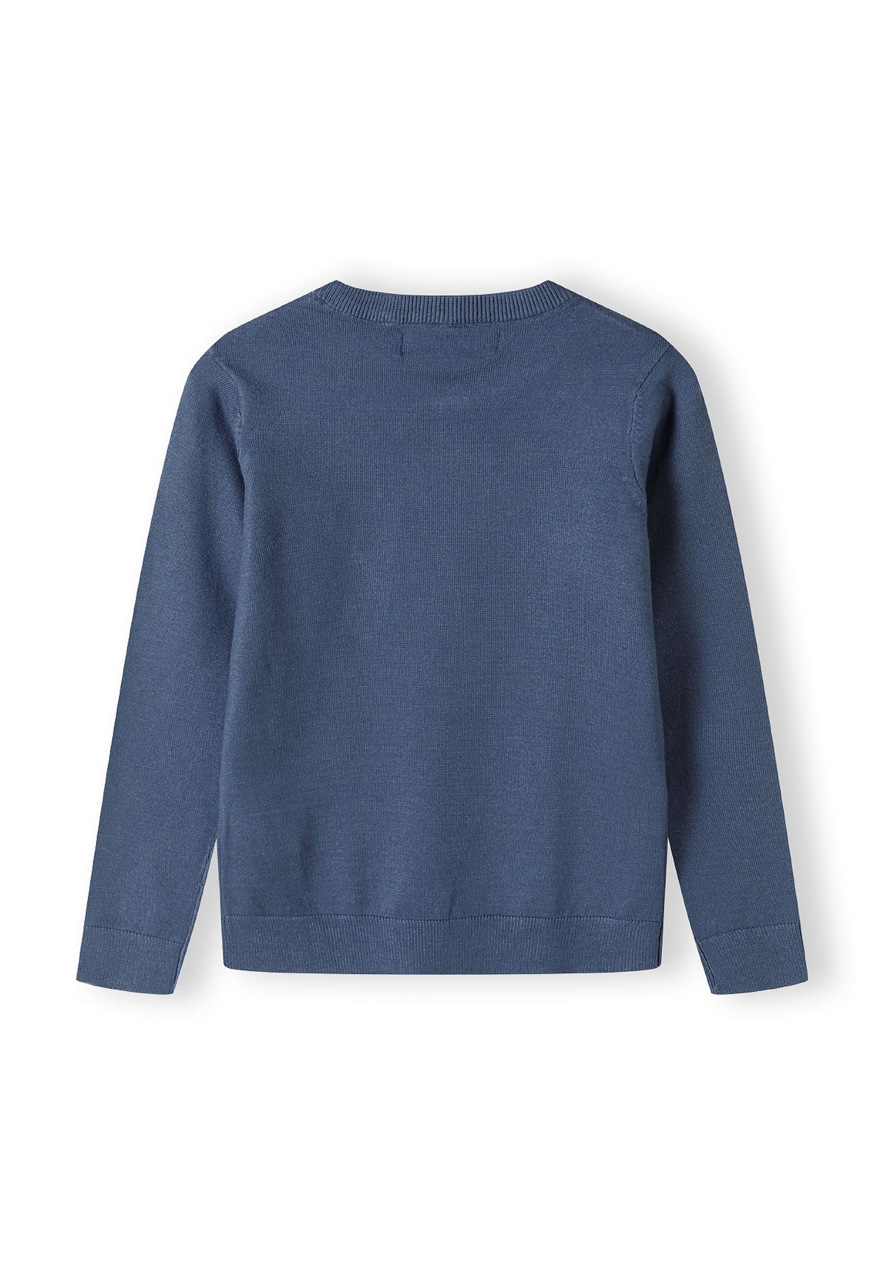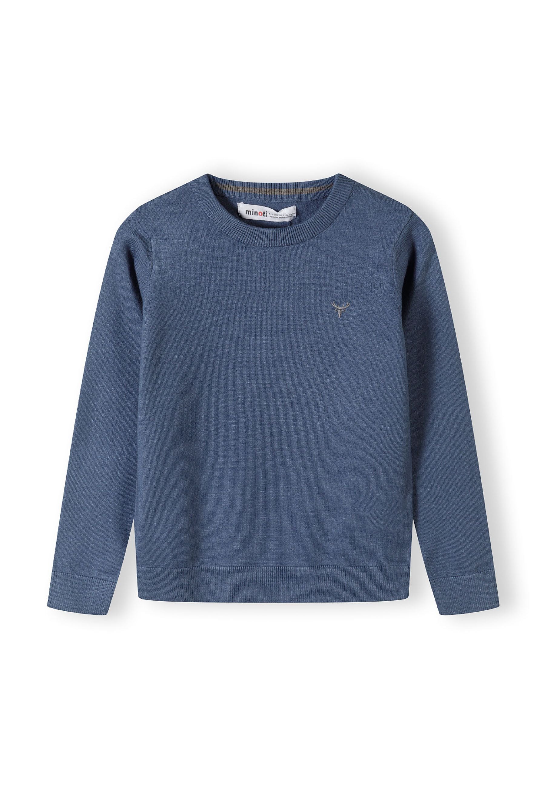 Boys fine knit jumper embroidered chest blue 2-14y