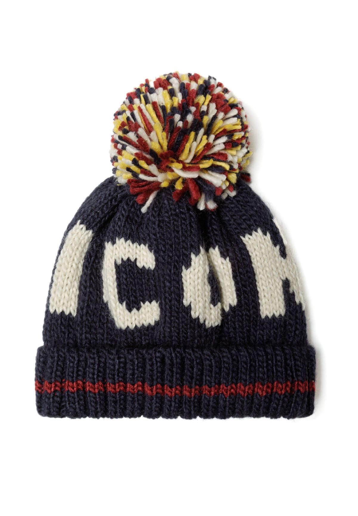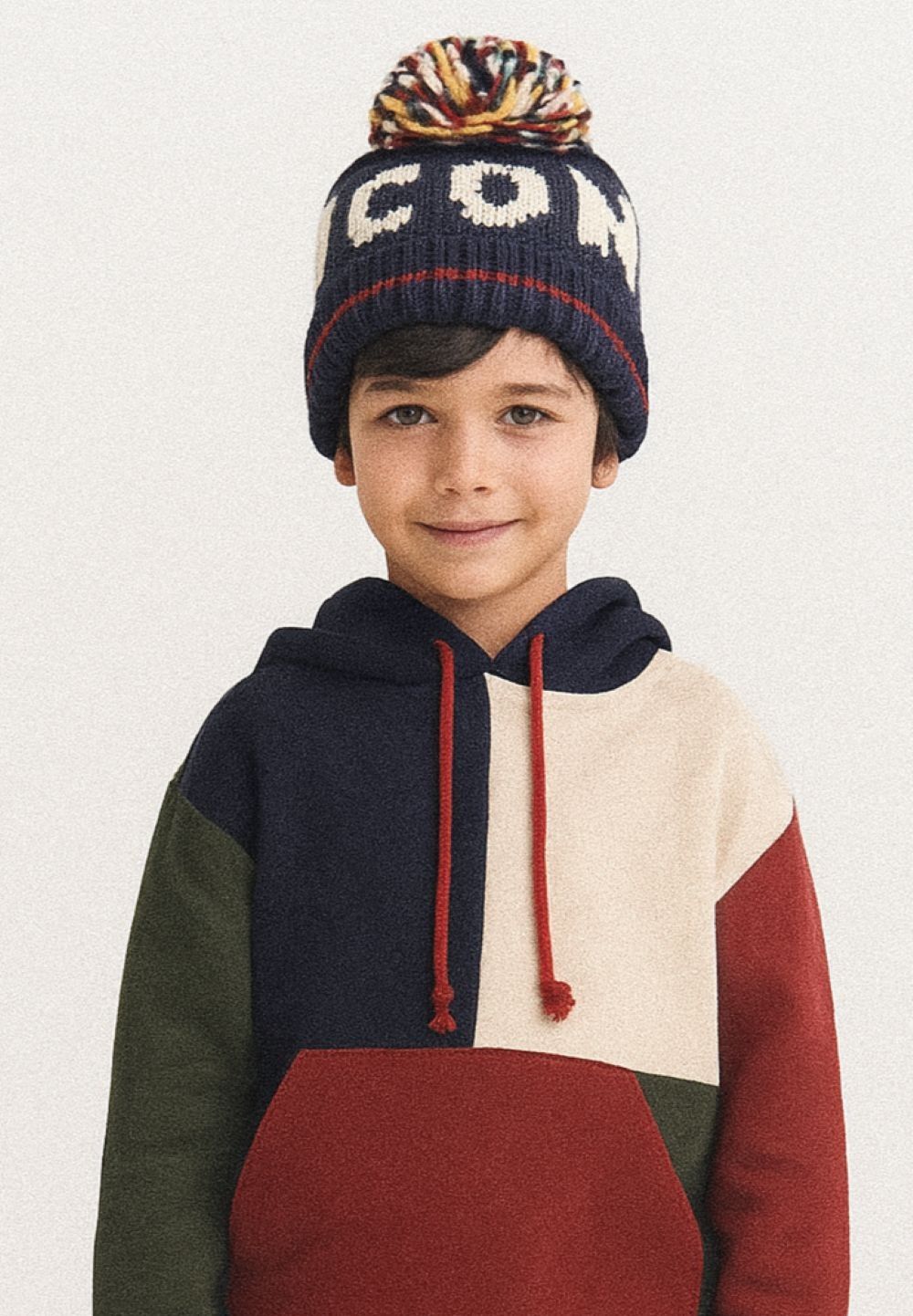 Minoti Boy's Winter Hat - Navy Blue with ICON Inscription and Pompom, 2-14 Years