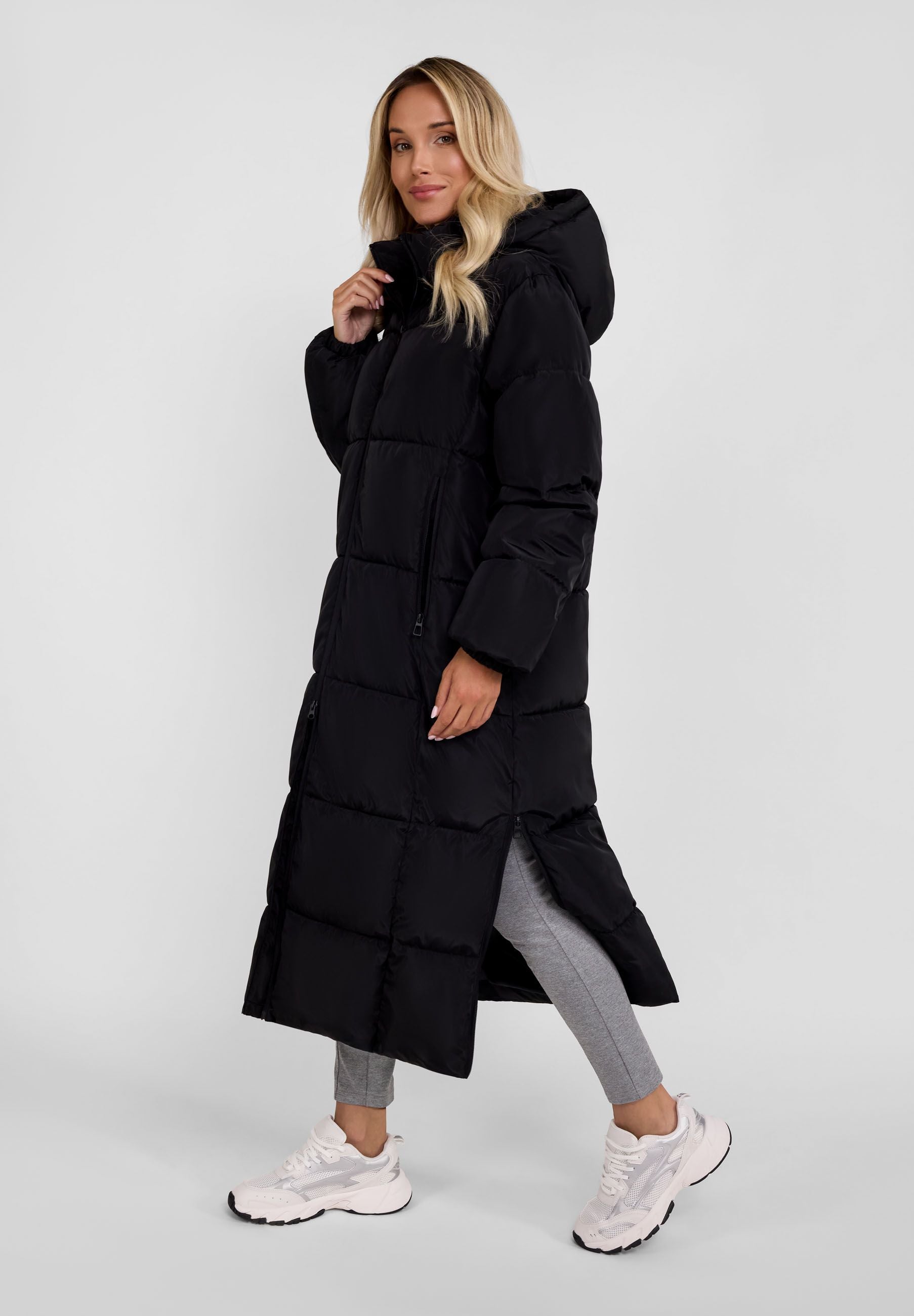 Długa pikowana kurtka zimowa damska czarna XS-XXL
