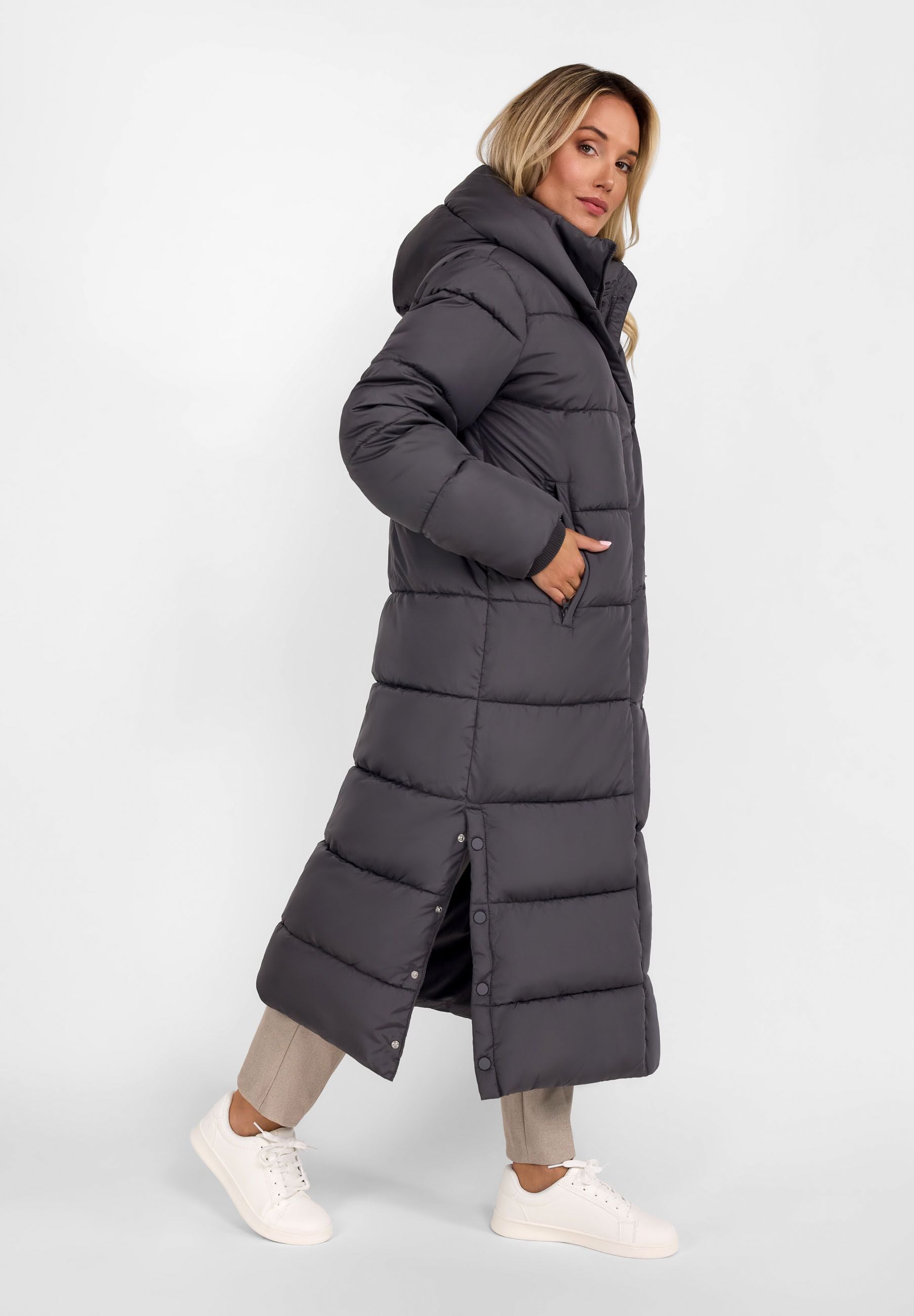 Długa pikowana kurtka zimowa damska szara XS-XXL
