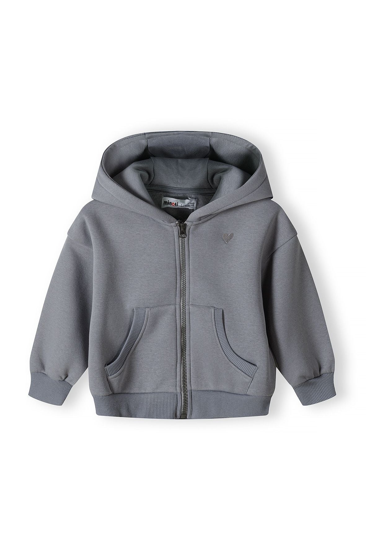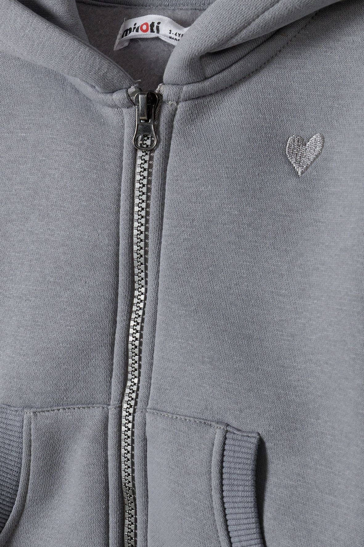 Girls fleece zip thru hoodie with hood grey 1-14y