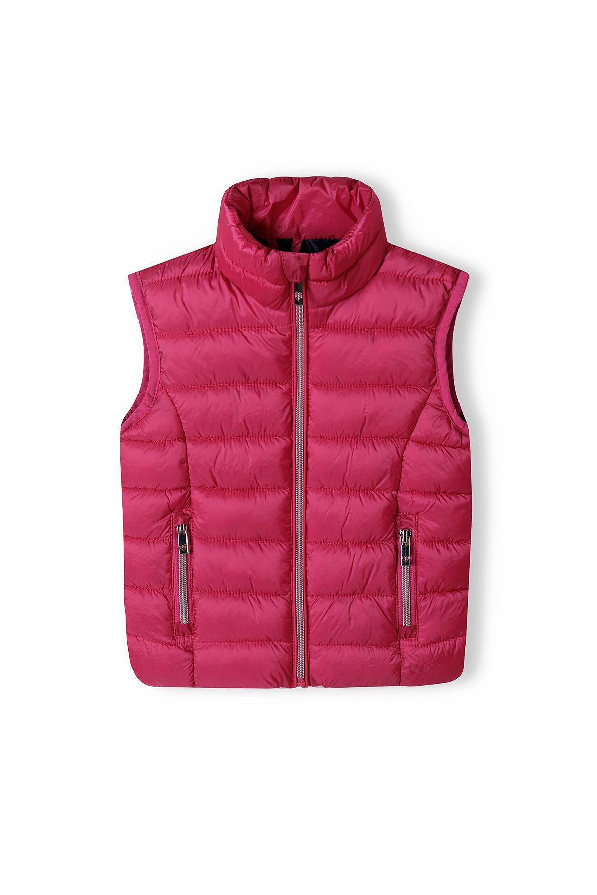 This girls quilted stand collar gilet features warm and cosy lightweight padding throughout,contrast inner lining, a bound front zipper fastening for easy changing and two handy front zipper pockets for storing her belongings in while out and about.