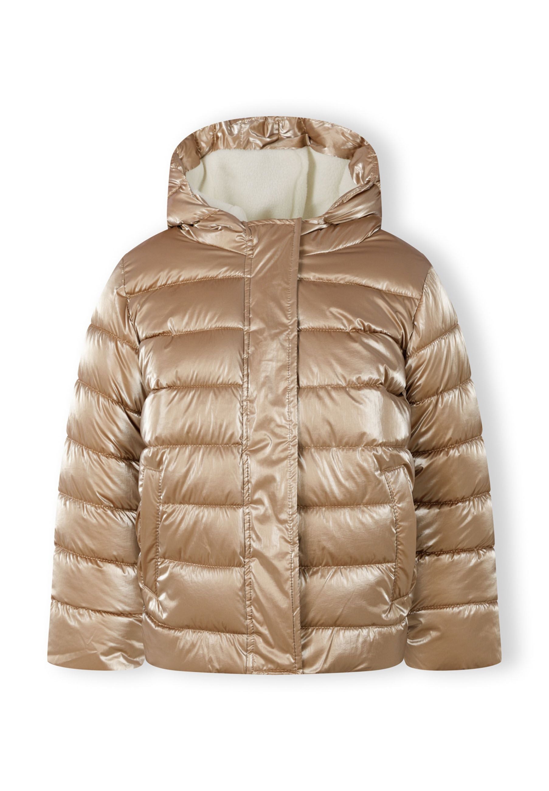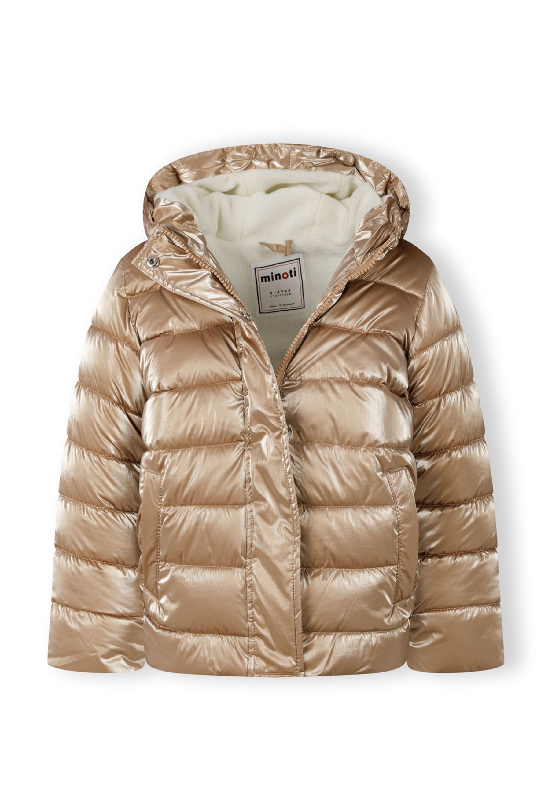 Girls padded winter jacket with hood, zipper and snap closure 9m–8y copper
