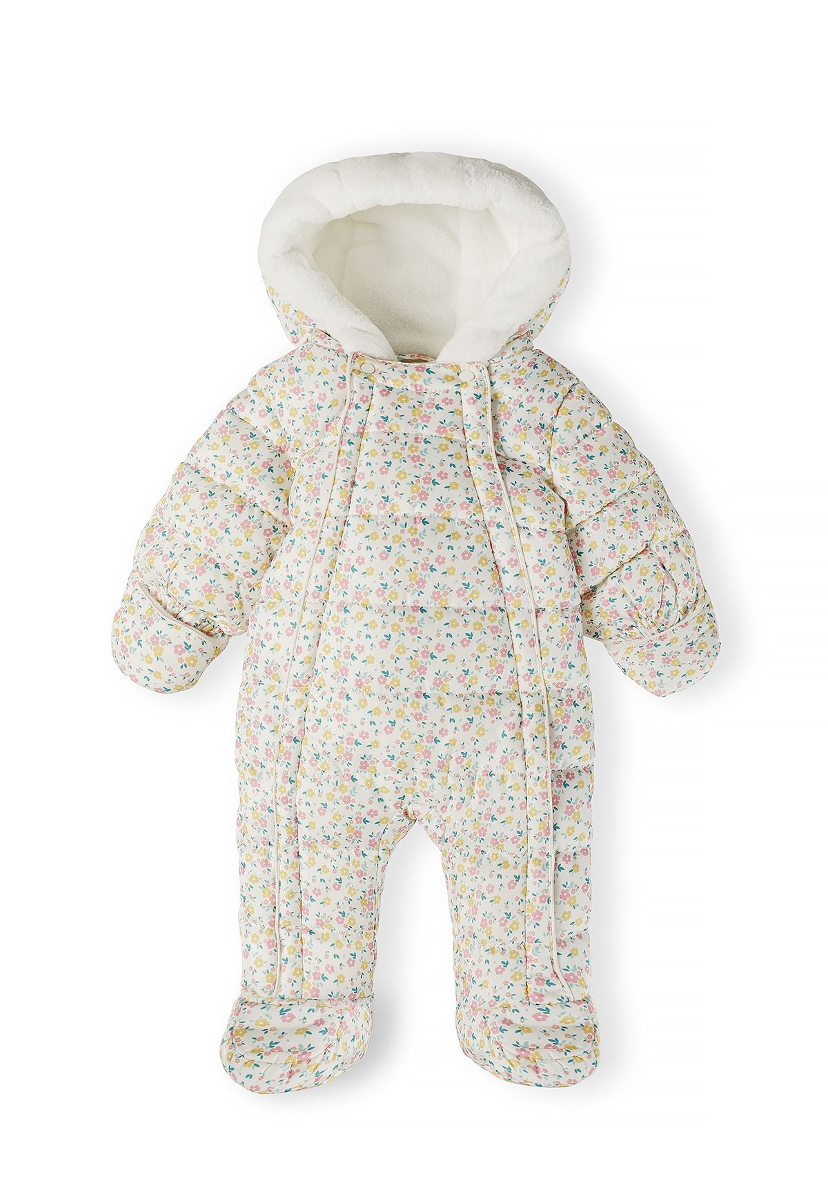 Girls baby snowsuit with hood double zip cream 0-24m