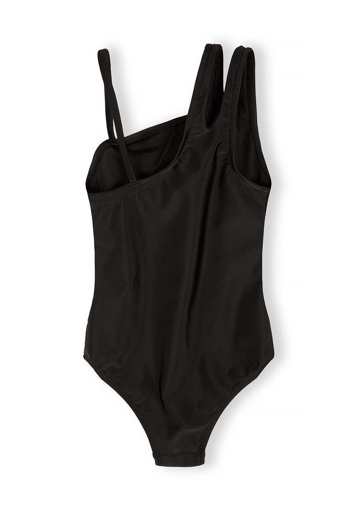 Girls asymmetrical black swimsuit single shoulder strap 3-11 years