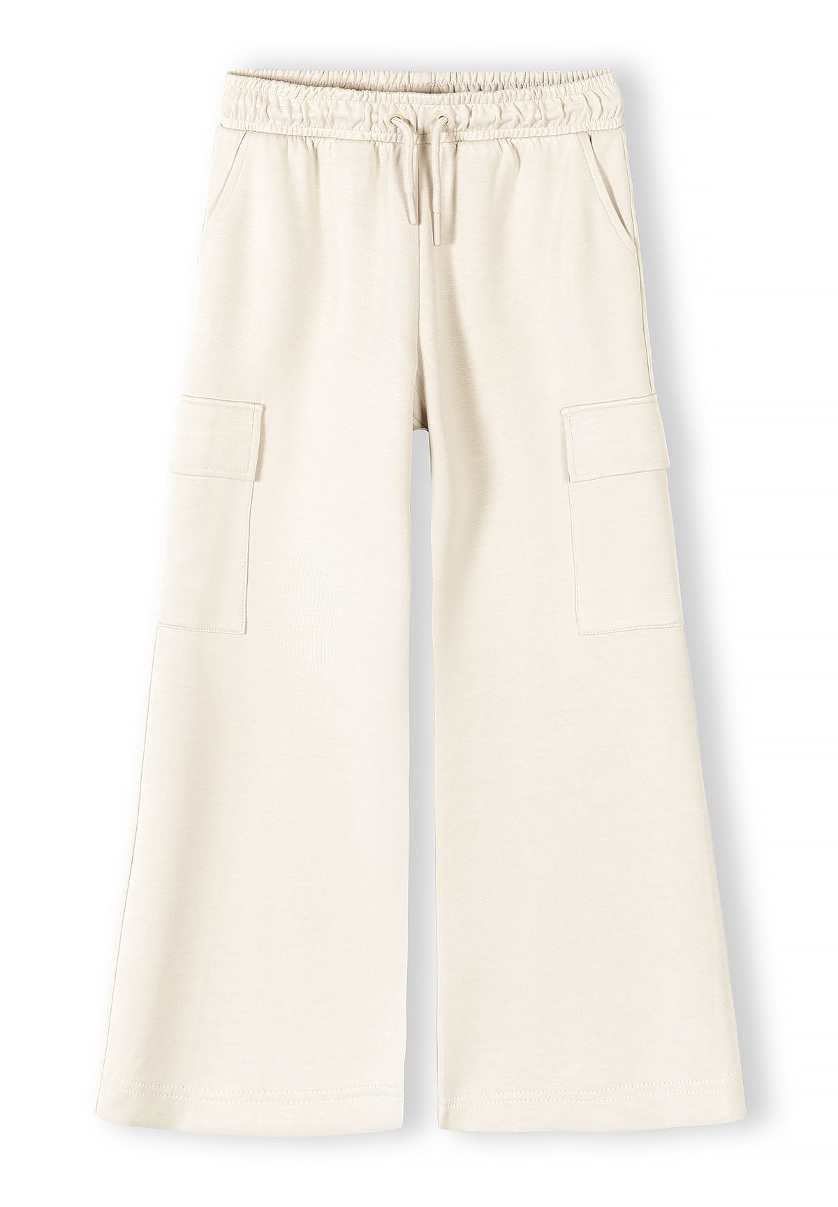 Girls’ joggers feature a wide leg silhouette combined with practical combat-style pockets on the thighs, offering a blend of contemporary design and functionality. The elasticated waistband and cuffed hems provide a secure, comfortable fit that moves with the wearer throughout the day. Crafted from a durable beige fabric with a smooth matte finish, these joggers are reinforced with stitching along seams and pocket edges to ensure long-lasting wear. Their relaxed fit and versatile style make them suitable for various seasons and occasions, balancing utility with comfort in everyday wear.