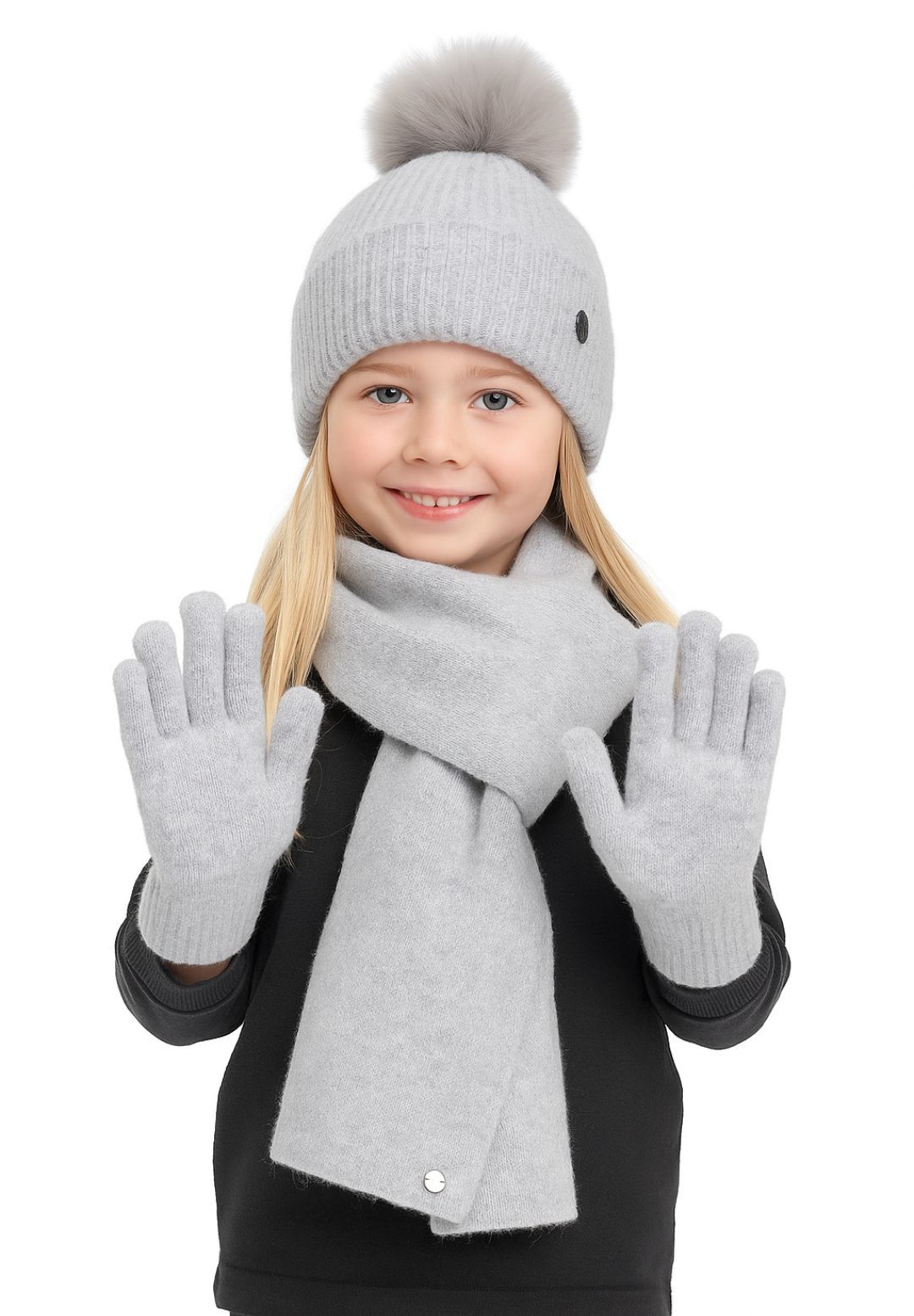 Girls 3 piece winter set ribbed knit grey 2-14y