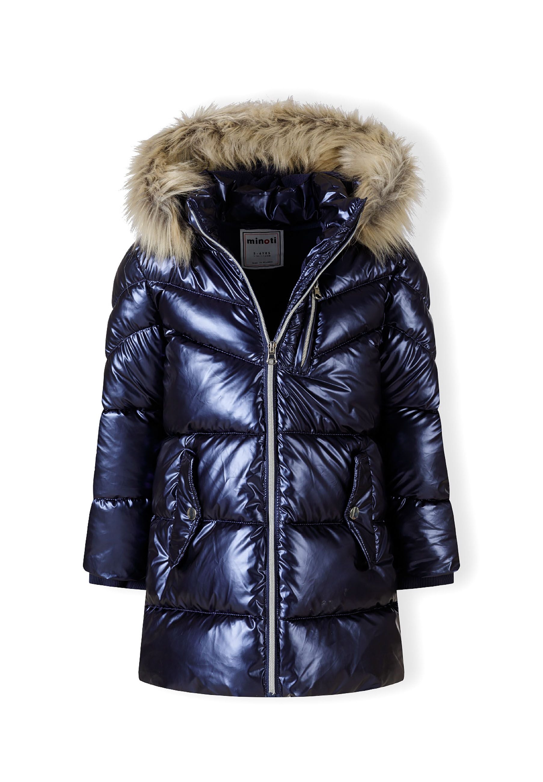 Shiny insulated jacket with detachable fur
