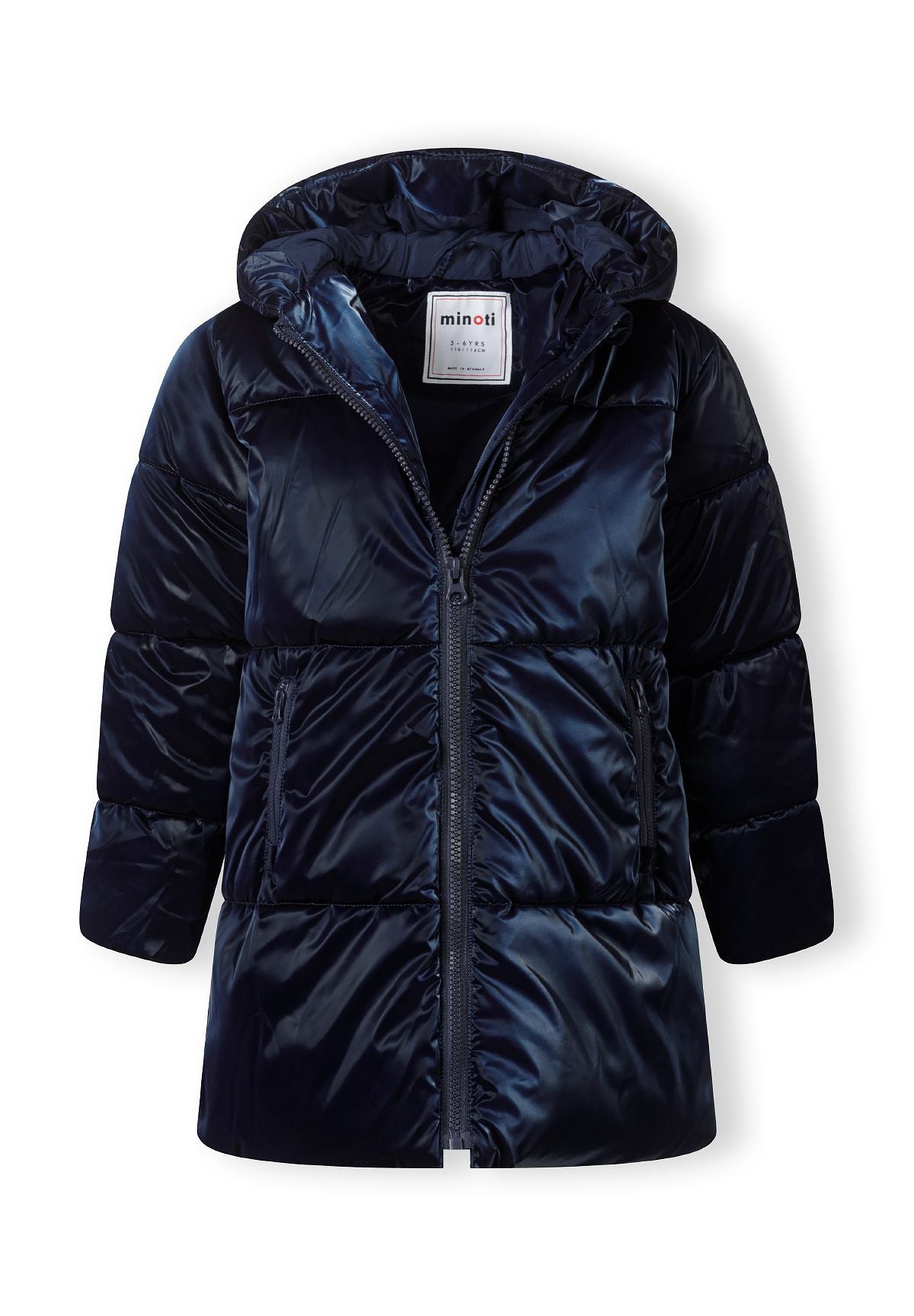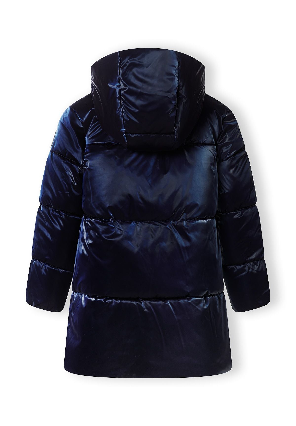 Kurtka dziewczęca midi błyszcząca granatowa 2-14 lat