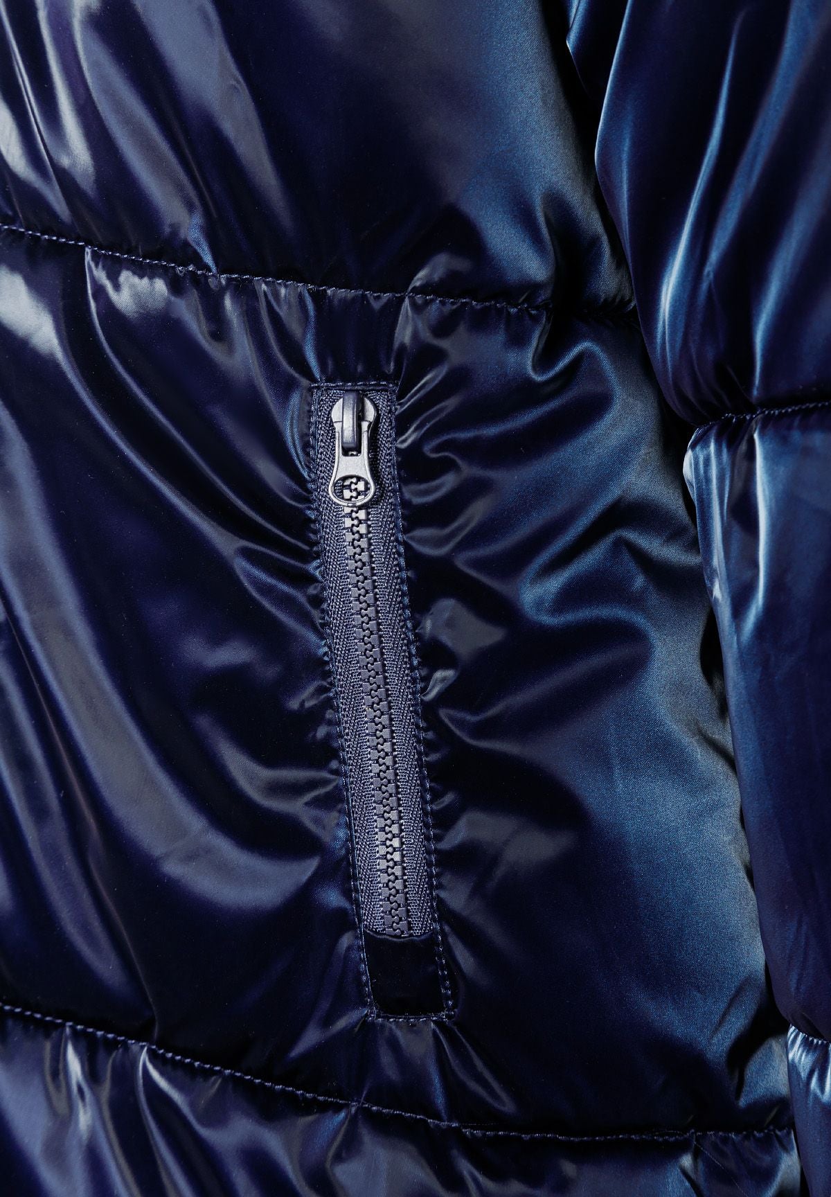 Wykonana z błyszczącego materiału kurtka ocieplana o dłuzszym fasonie zapewnia lepsze okrycie i ciepło. Naszywka na rękawie dodaje wyjątkowego stylu. Praktyczne kieszenie są zapinane na suwak. Idealna do zapewnieniadziecku przytulności i szyku w chłodniejsze dni.