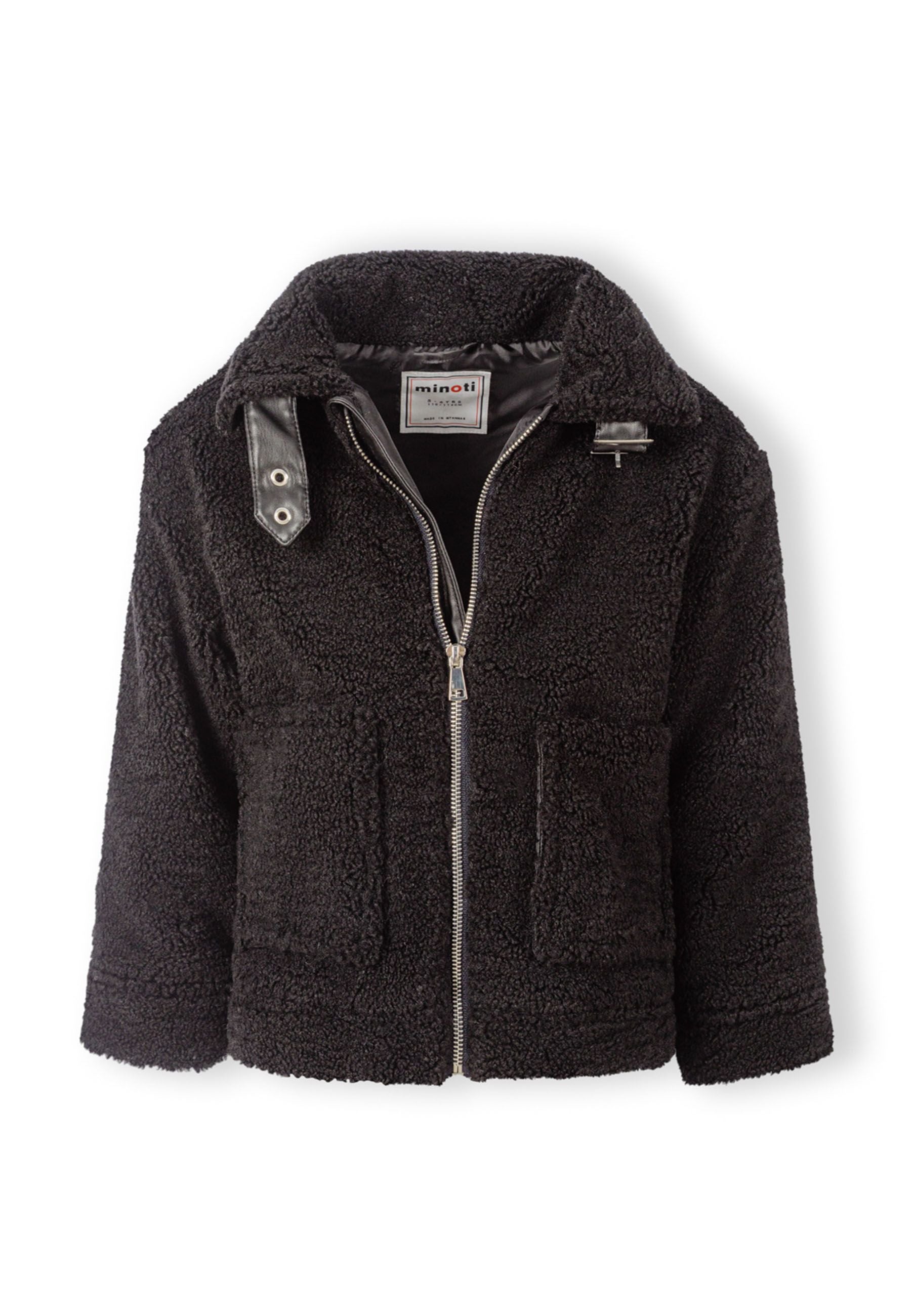 Kurtka dziewczęca teddy z kołnierzem czarna 2-14 lat