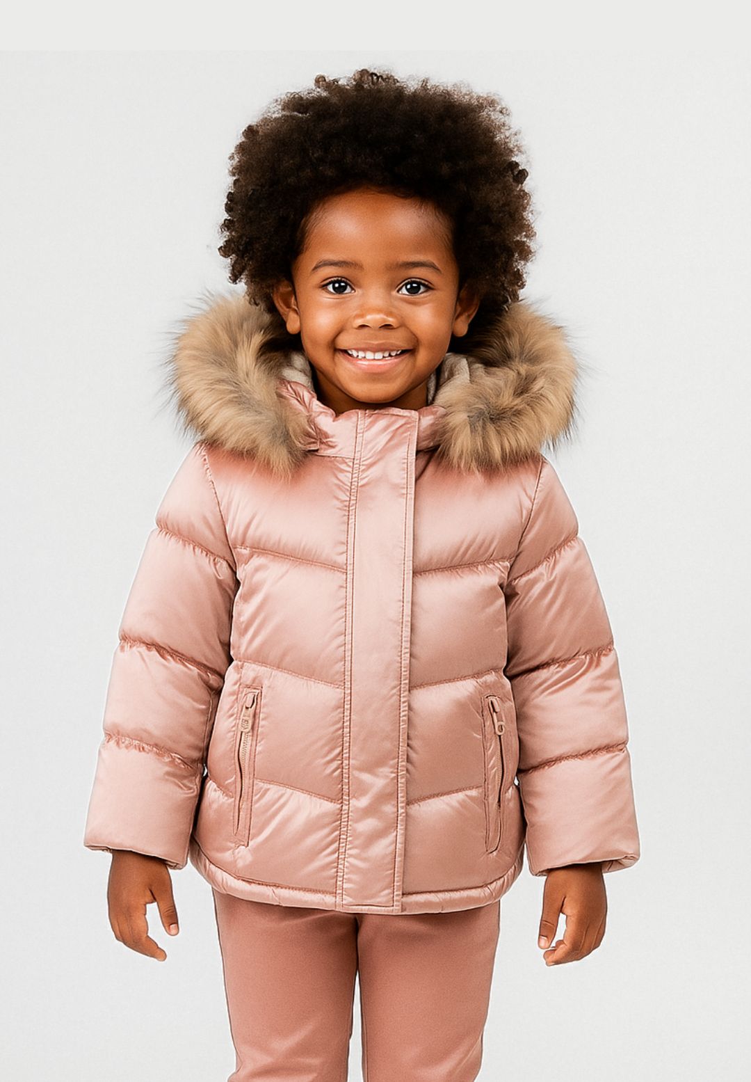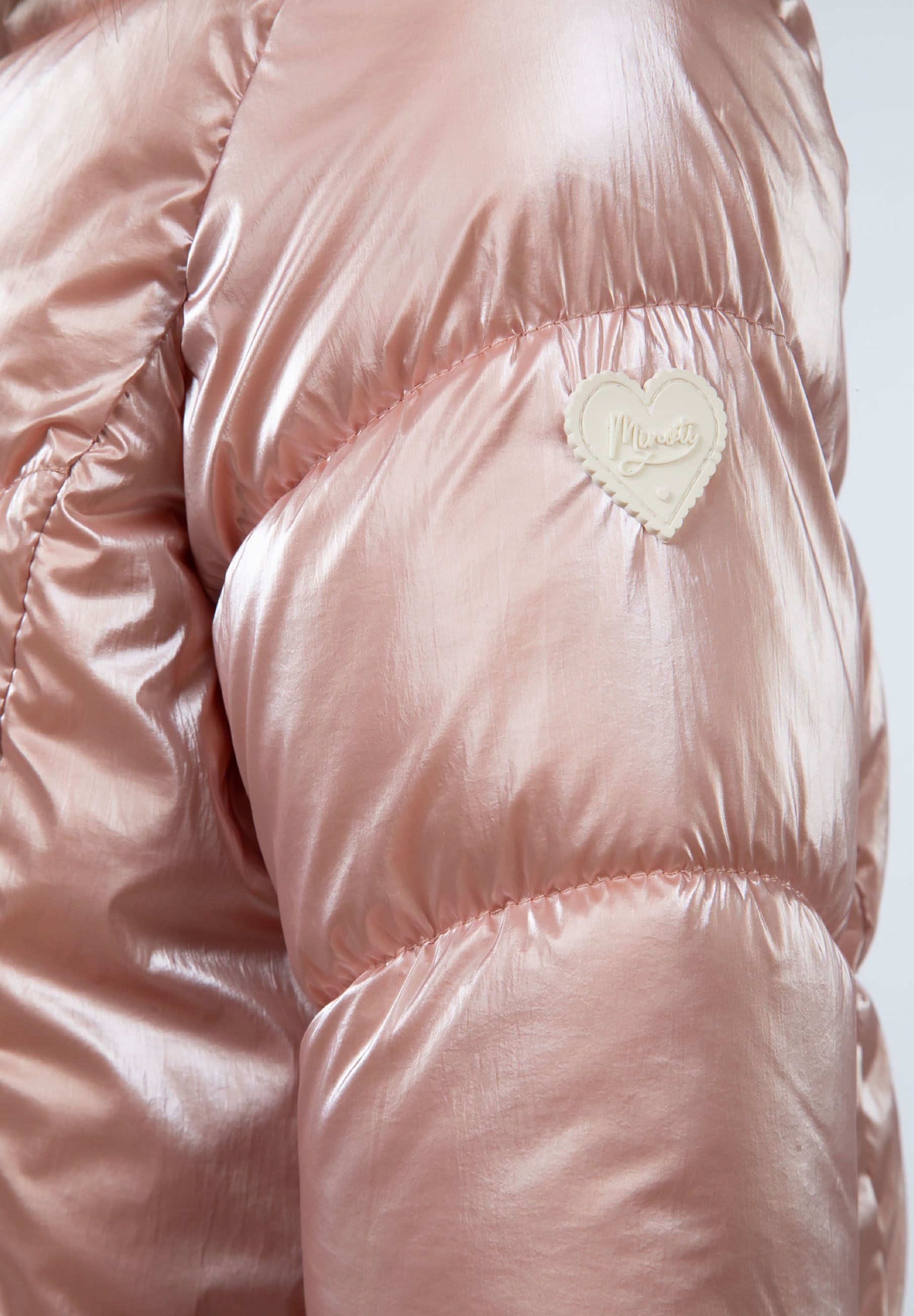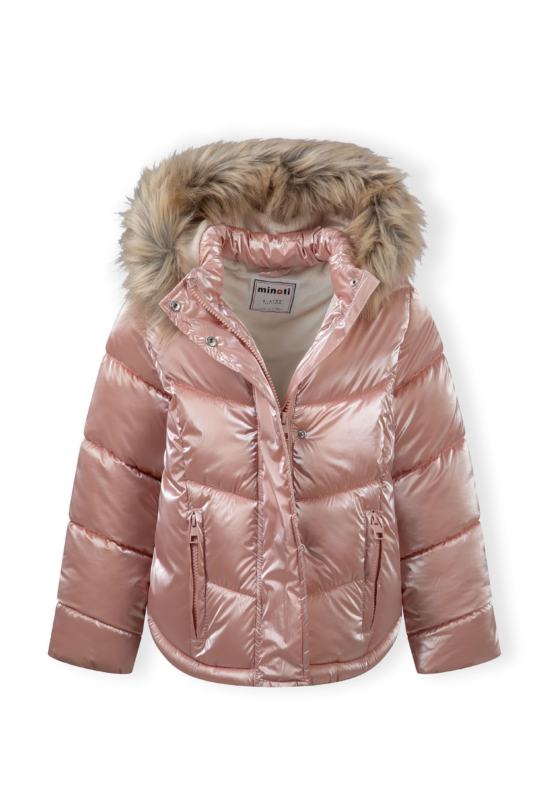 Ocieplana kurtka dziecięca dla dziewczynki w delikatnym różu z kapturkiem 2-14 lat