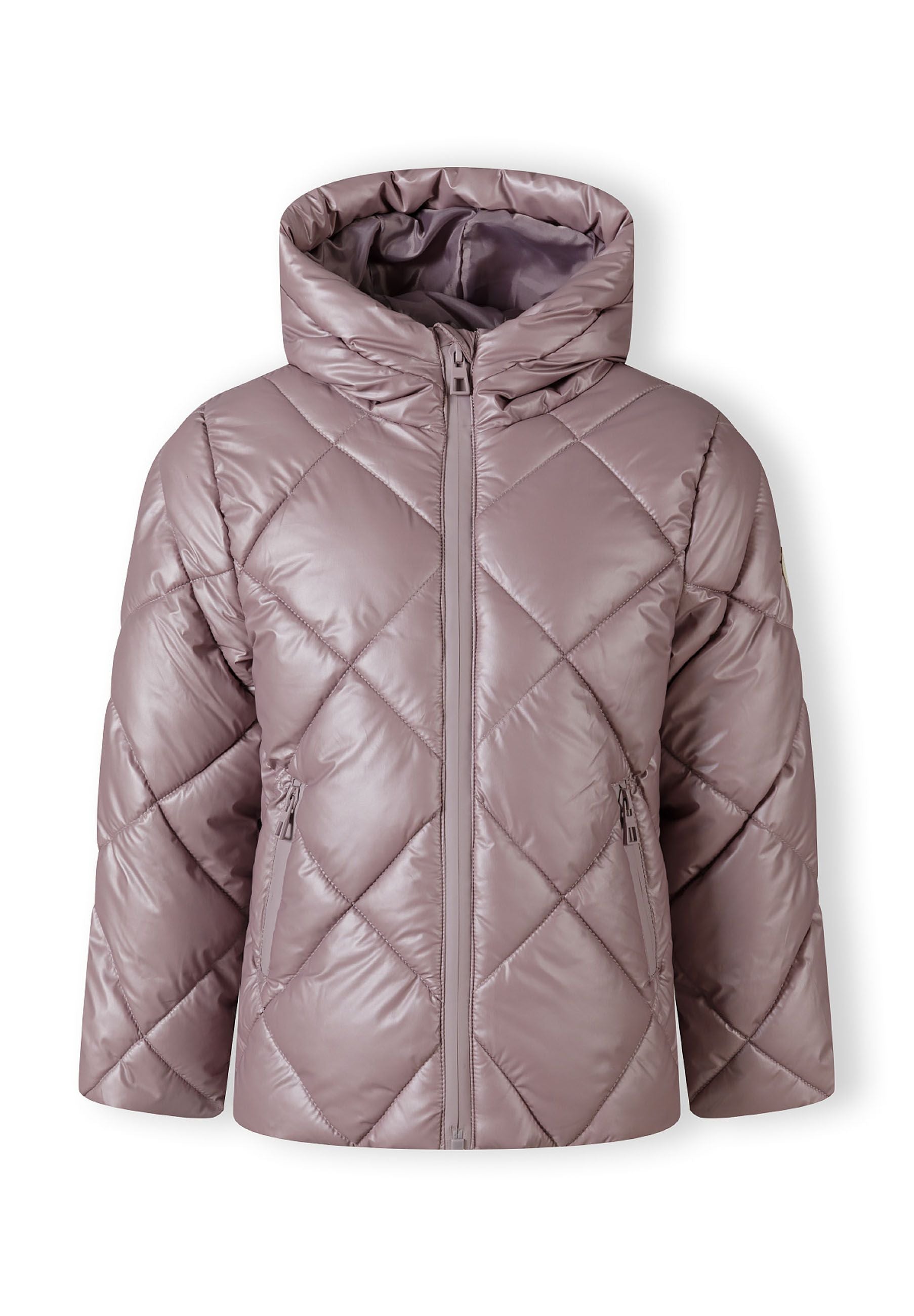 Diamond-patterned quilted hooded jacket