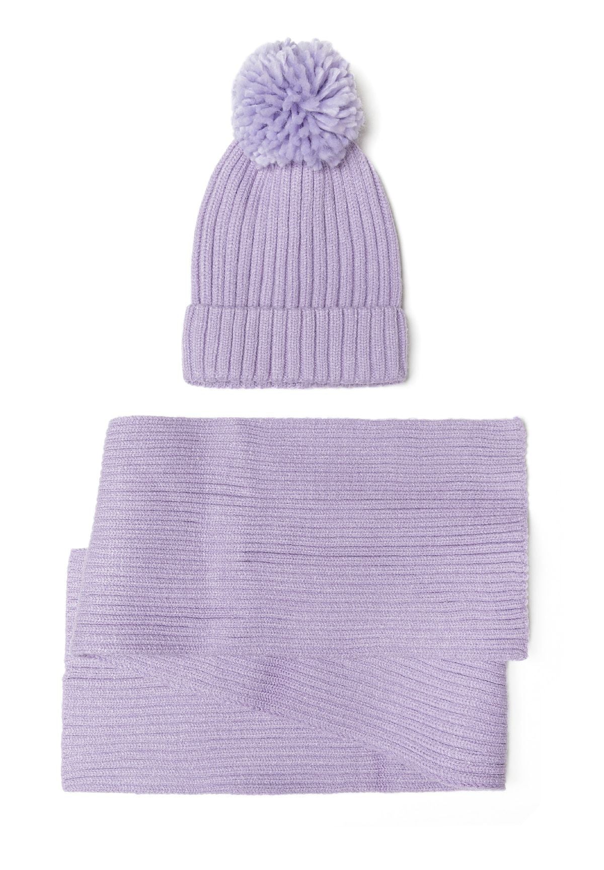 Minoti girl's set - pompom hat and purple scarf, with viscose, 6-24m