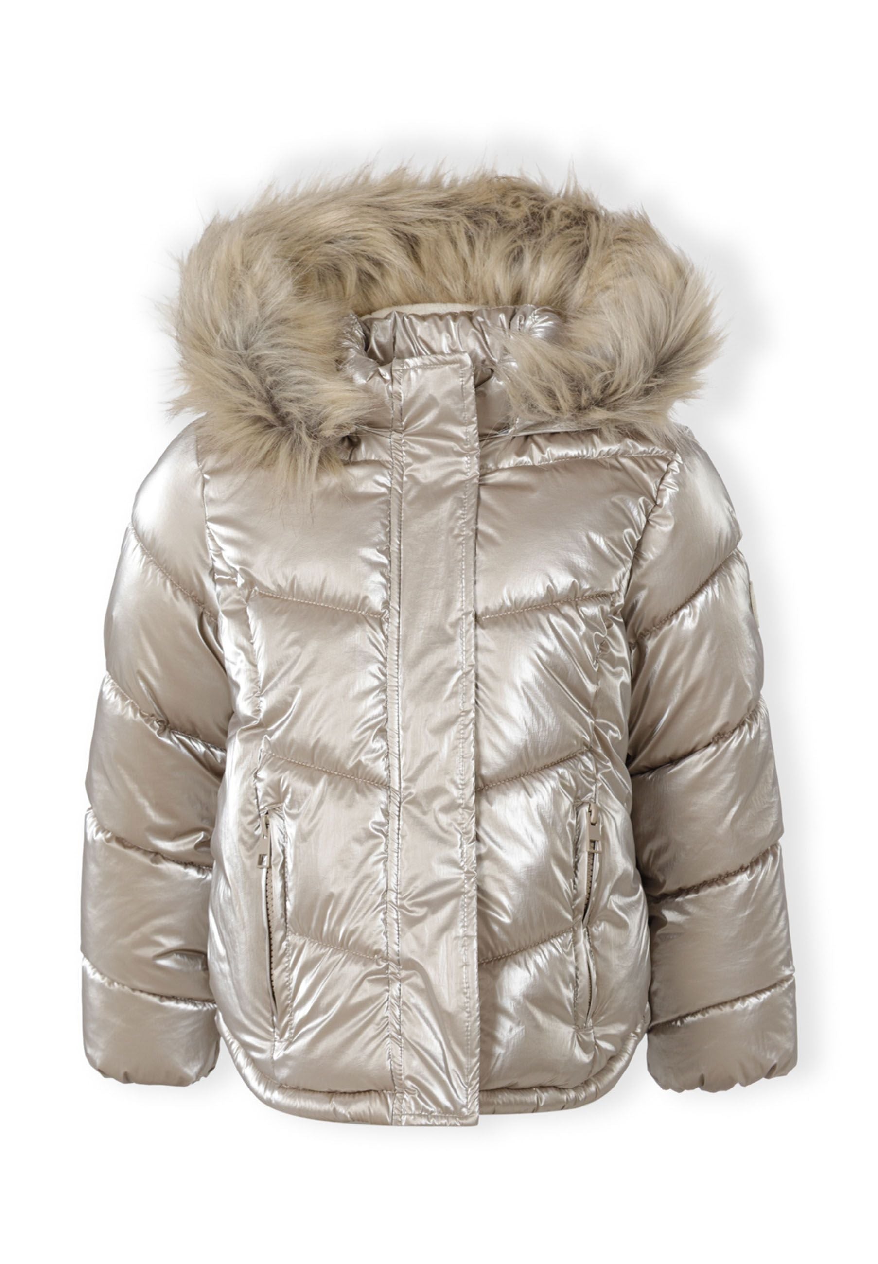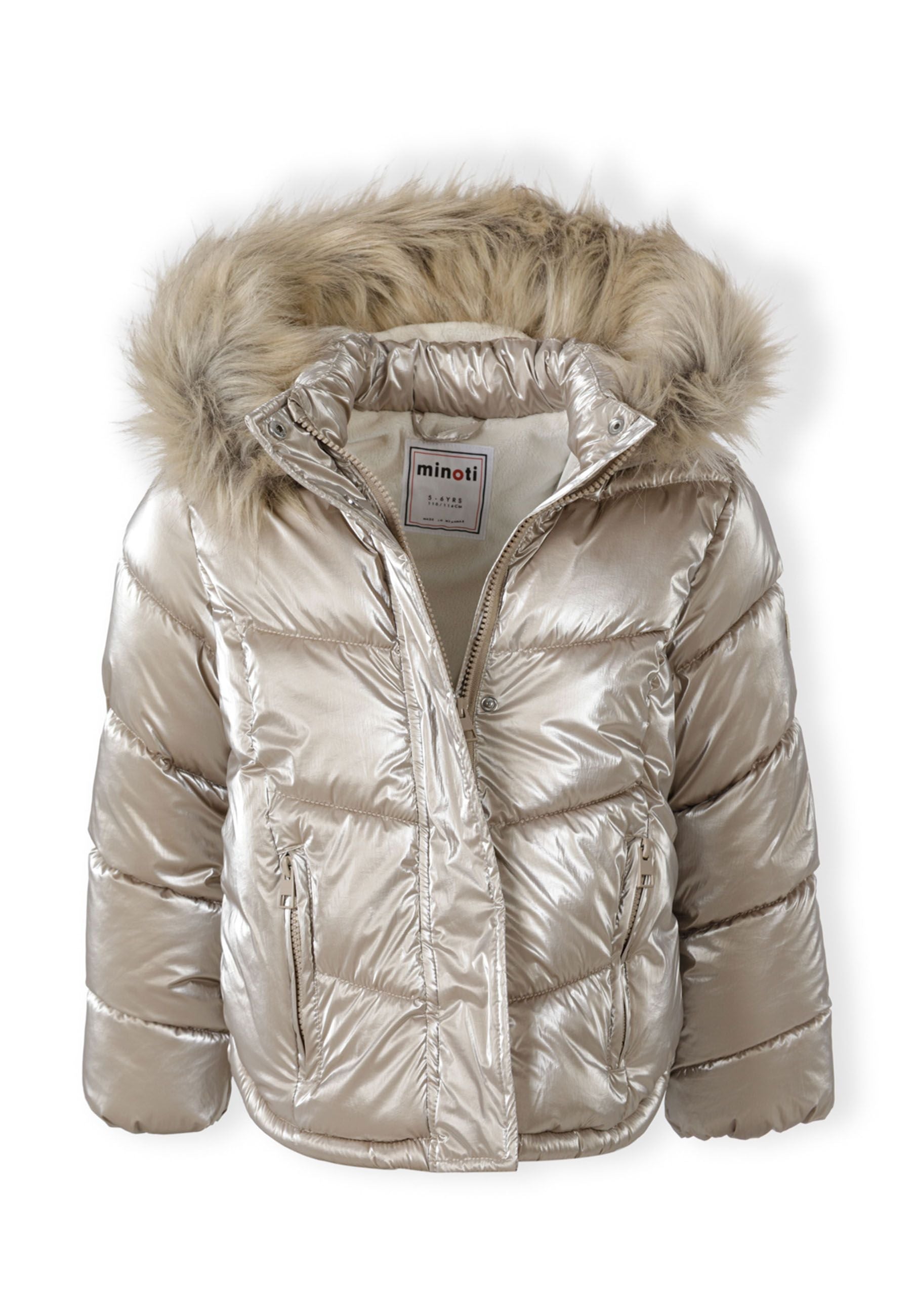 Girls' insulated jacket with hood and fur collar 2-14 y