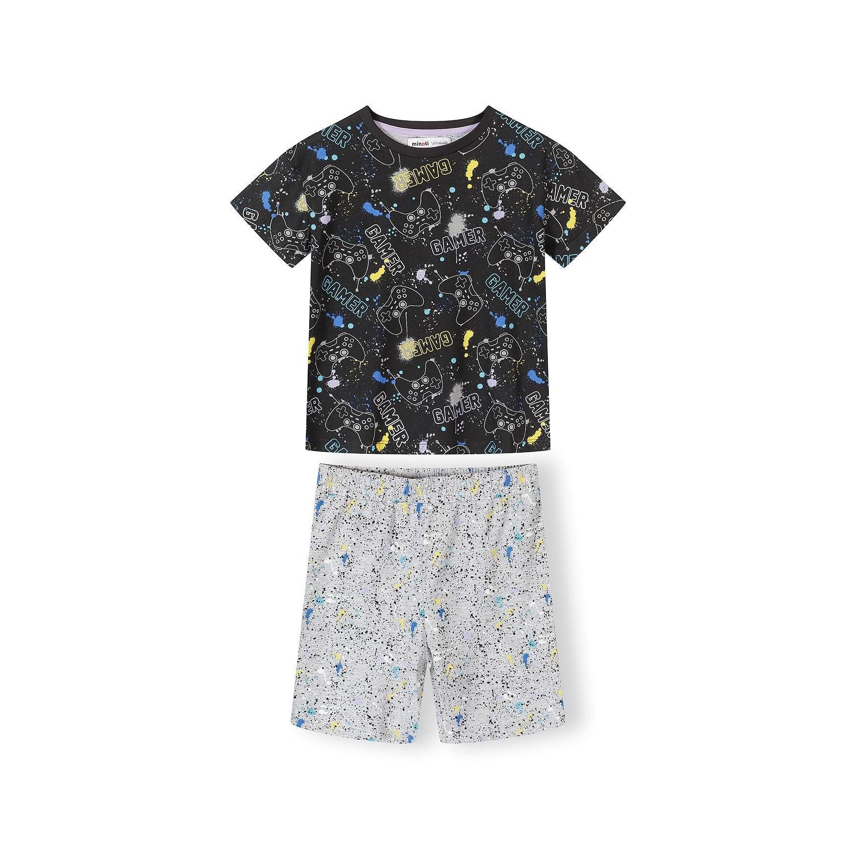 Chlapčenská sada 2 kusov obsahuje dve potlačené tričká a zladené šortky navrhnuté na každodenné nosenie a aktivity. Obe tričká sú vyrobené z pleteného bavlneného dresu s pravidelným strihom, okrúhlym výstrihom a krátkymi rukávmi, ktoré zaručujú voľnosť pohybu bez zapínania.