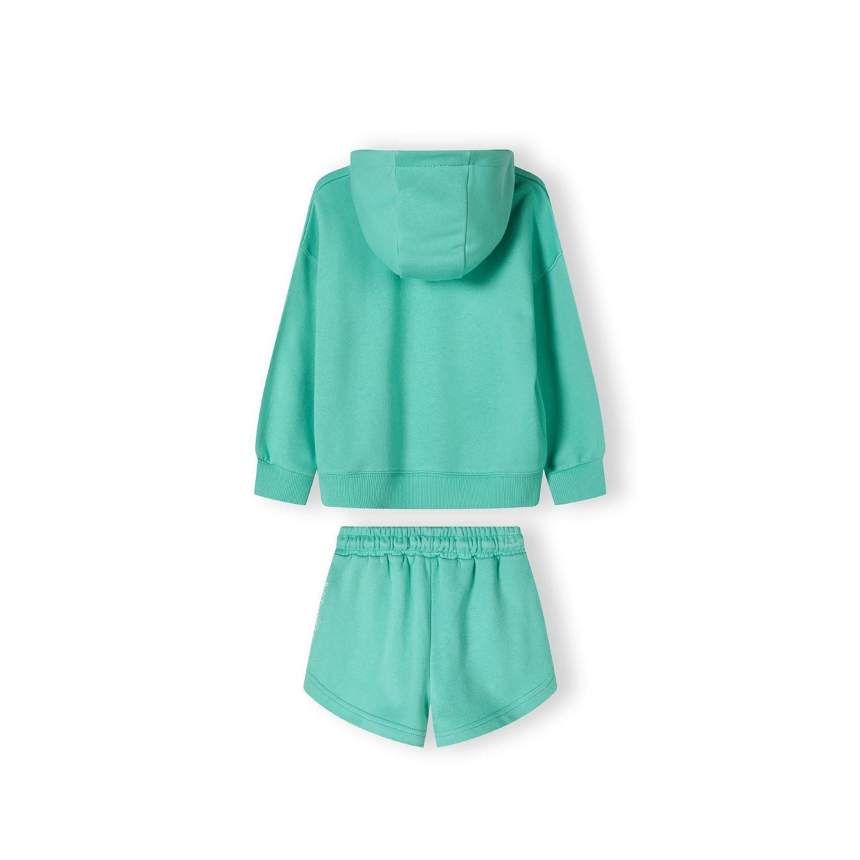 Dekliški komplet pulover s kapuco in kratke hlače s potiskom zelena 3-14 let