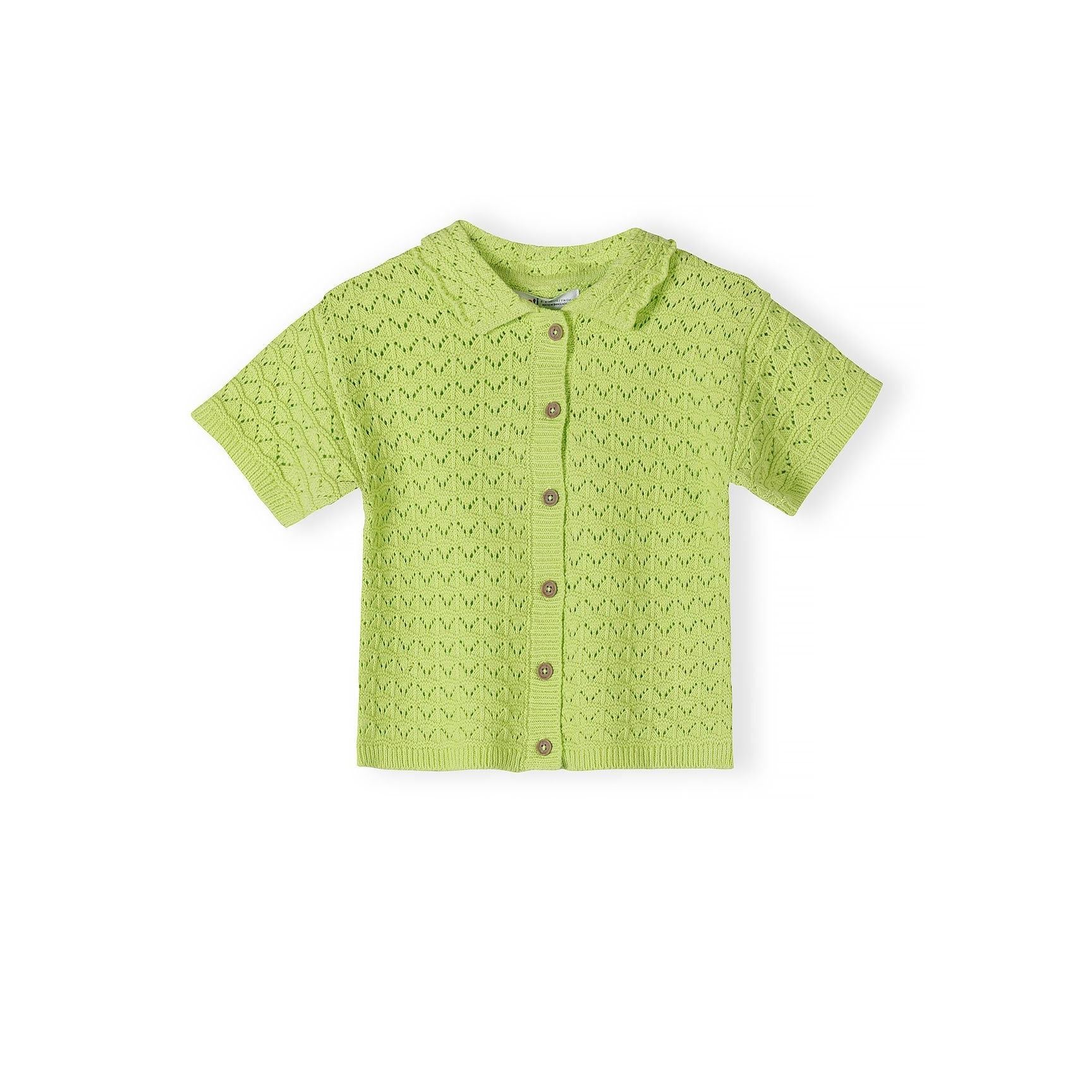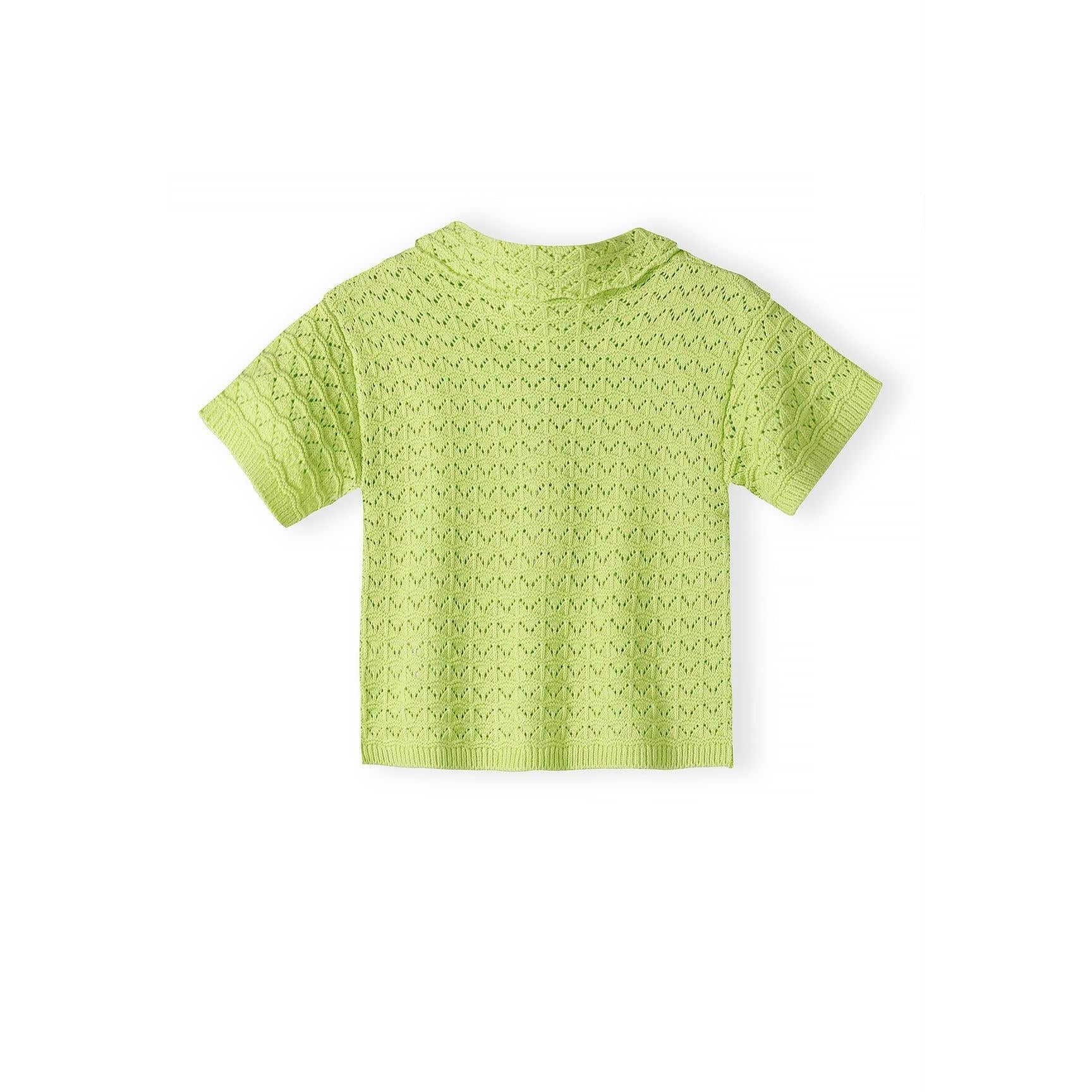 Dekliški komplet iz pointelle pletenine v limetno zeleni barvi z zgornjim delom na gumbe, 3 do 15 let
