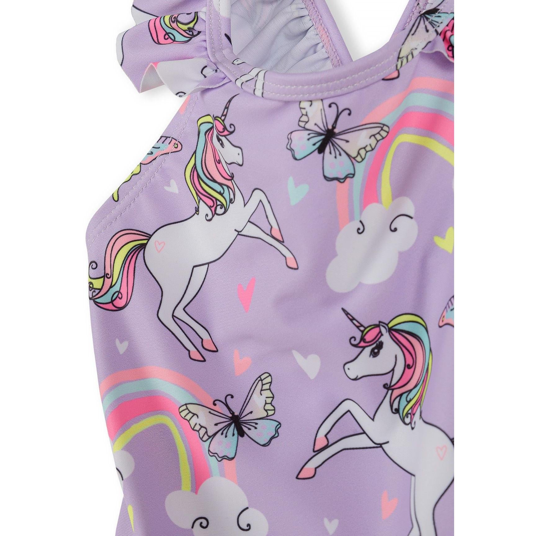 Ta kopalke za deklice z motivom samoroga ima nežno vijolično osnovo, okrašeno z živahnim vzorcem samoroga. Popolne za deklice od 3 mesecev do 7 let, te čudovite kopalke vključujejo usklajen elastični trak za lase za popoln poletni slog na plaži ali ob bazenu.