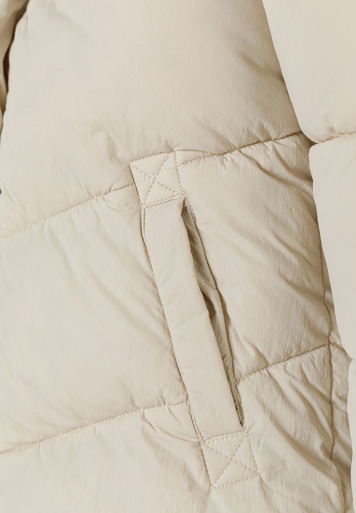 Flickors beige vadderade dunjacka med pälsmössa