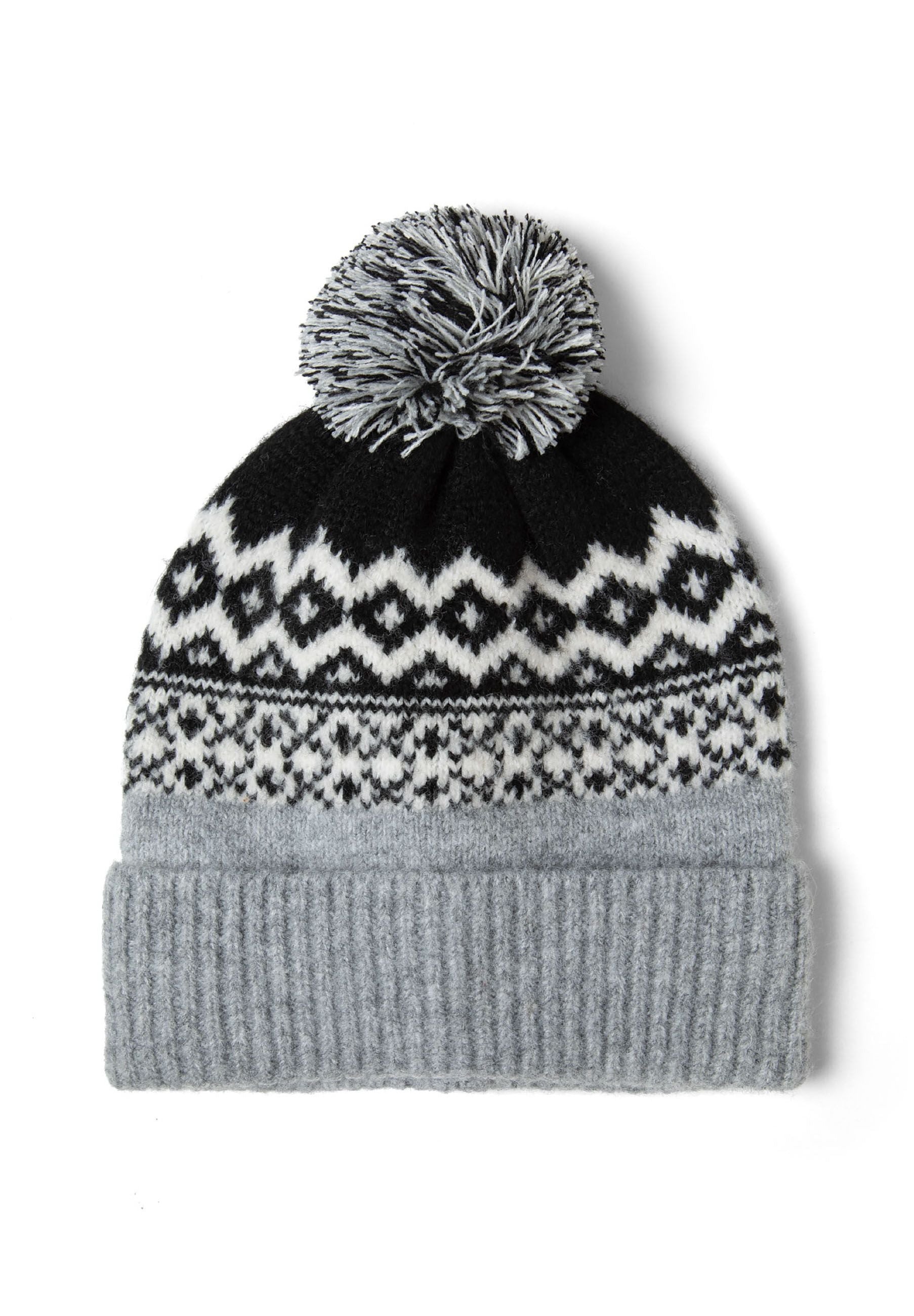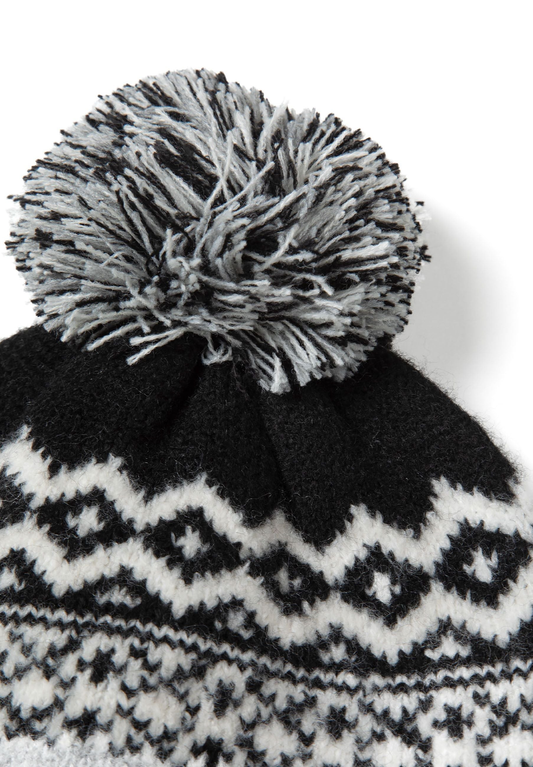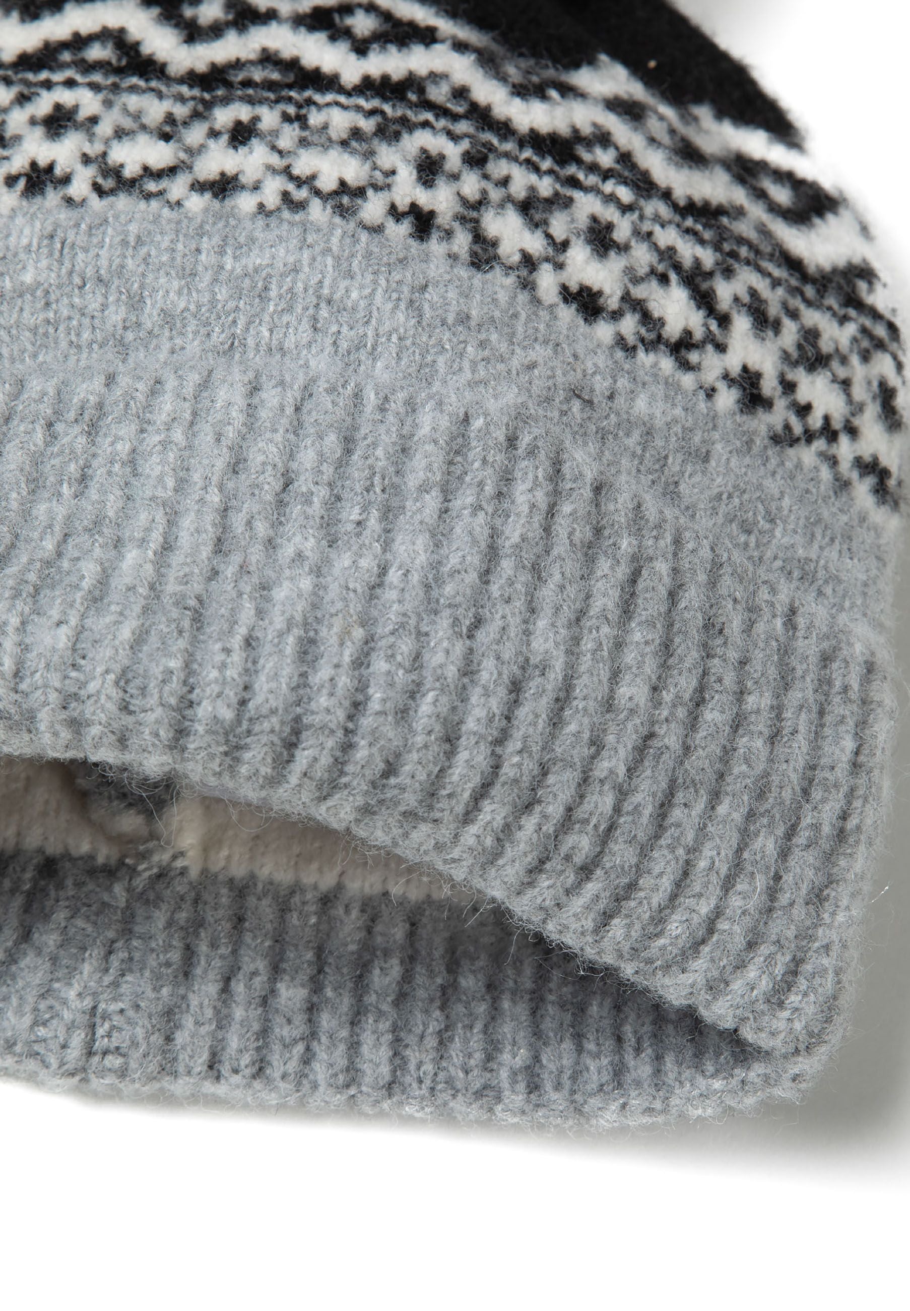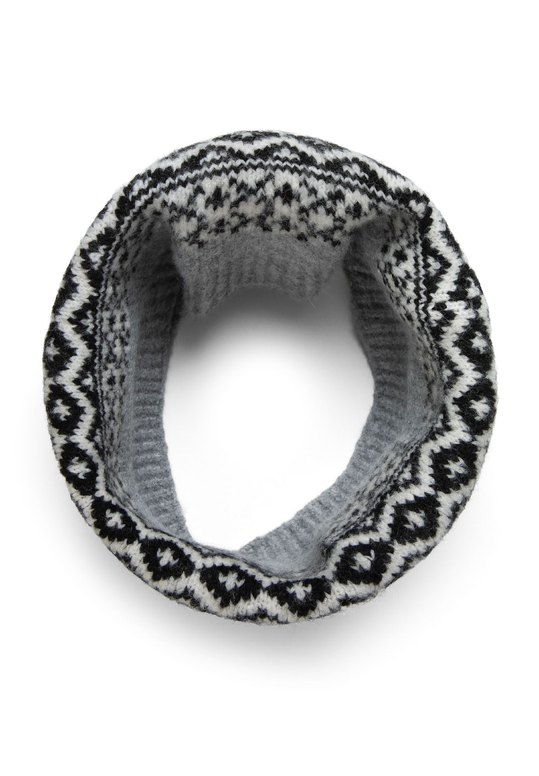 Vinterstickad mössa, halsduk och vantar set Fair Isle grå
