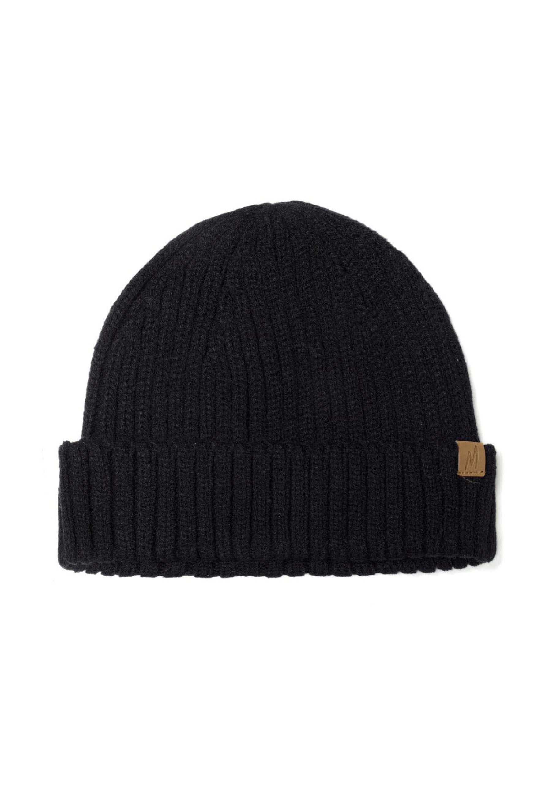 Mössa Set Svart Ribbstickad med Matchande Halskrage