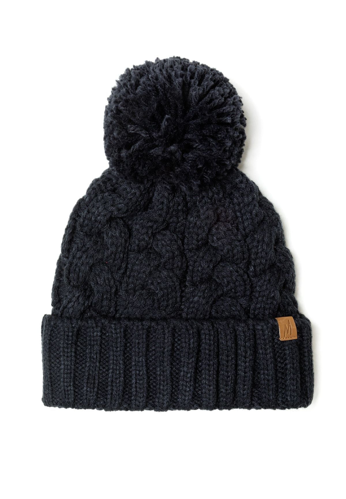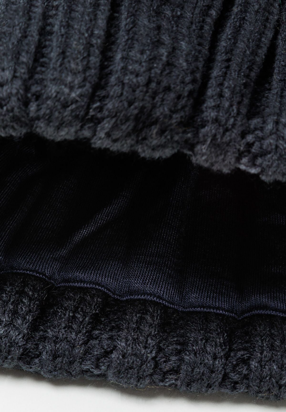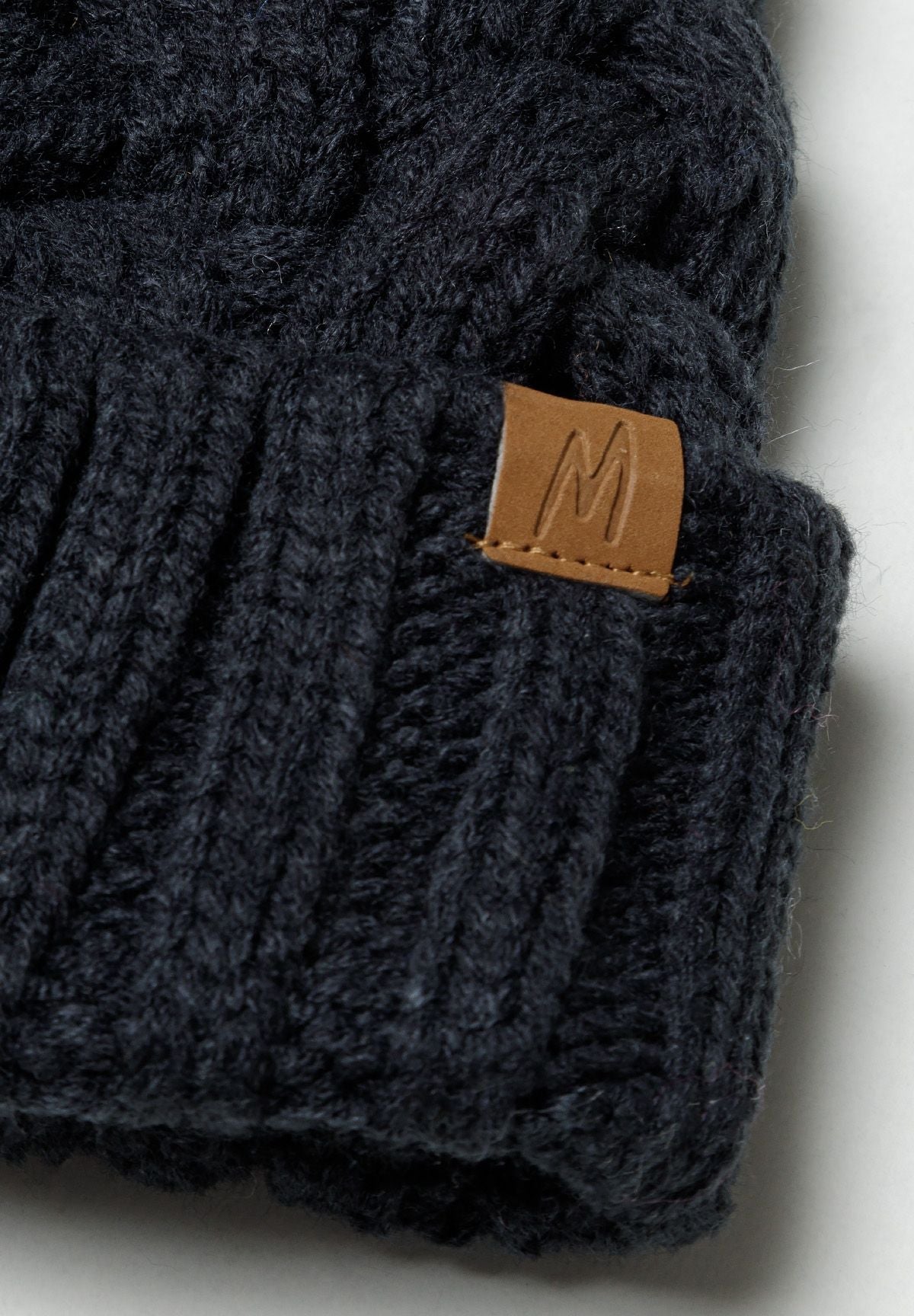 Pojkmössa med tofs i mörkgrått, marinblått och svart