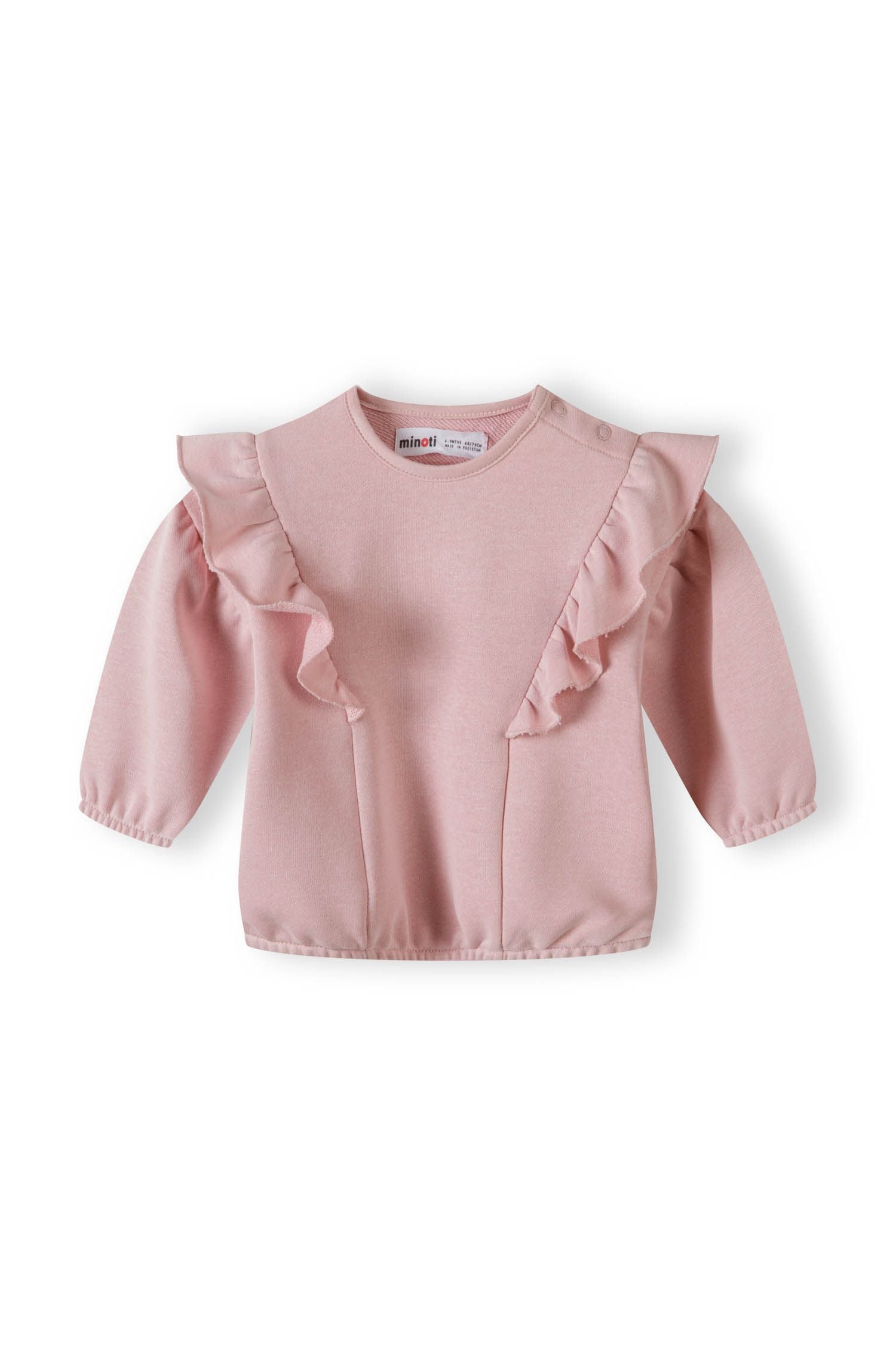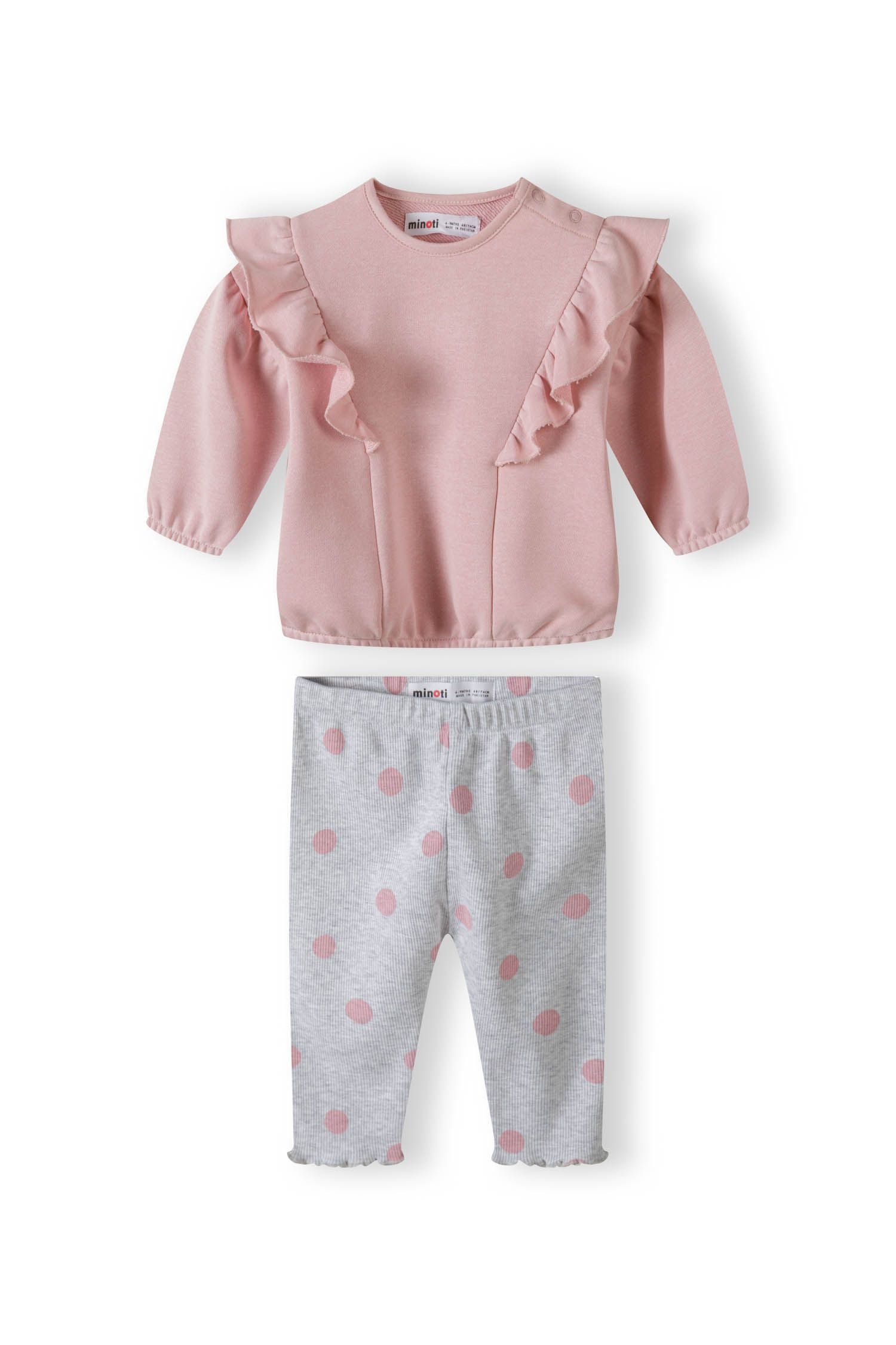 Flickors långärmade sweatshirt med volang på axeln och ribbade leggings set ljusrosa 3-24 mån