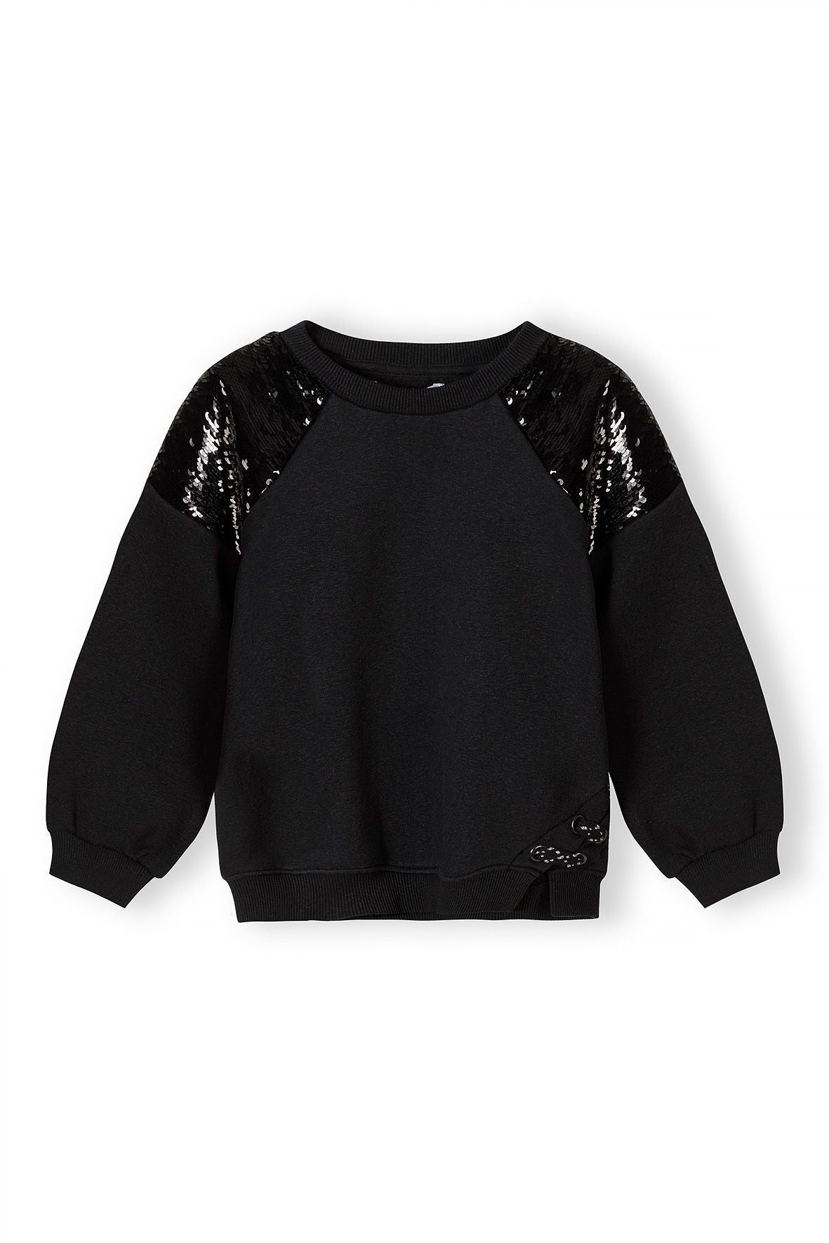 Tjejers crewneck-tröja med paljett- och öljettdetalj svart 3-14 år